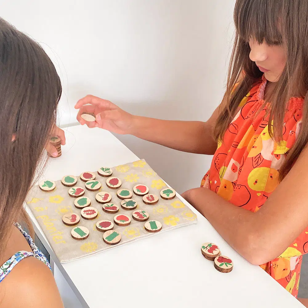 Le design de ce jeu en bois français est à la fois beau, élégant et moderne ! « 4 à planter » est un jeu de qualité, constitué de belles matières, à la fois solides et durables pour la planète et dans le temps. Vous apprécierez la finesse des détails des illustrations des fruits et légumes ainsi que le style très coloré et contemporain du jeu. Le design du jeu est conçu pour plaire aux enfants grâce à ses jolies couleurs mais aussi pour être très élégant et pourquoi pas servir de décoration une fois déployé ou rangé sur une étagère de la chambre des enfants !