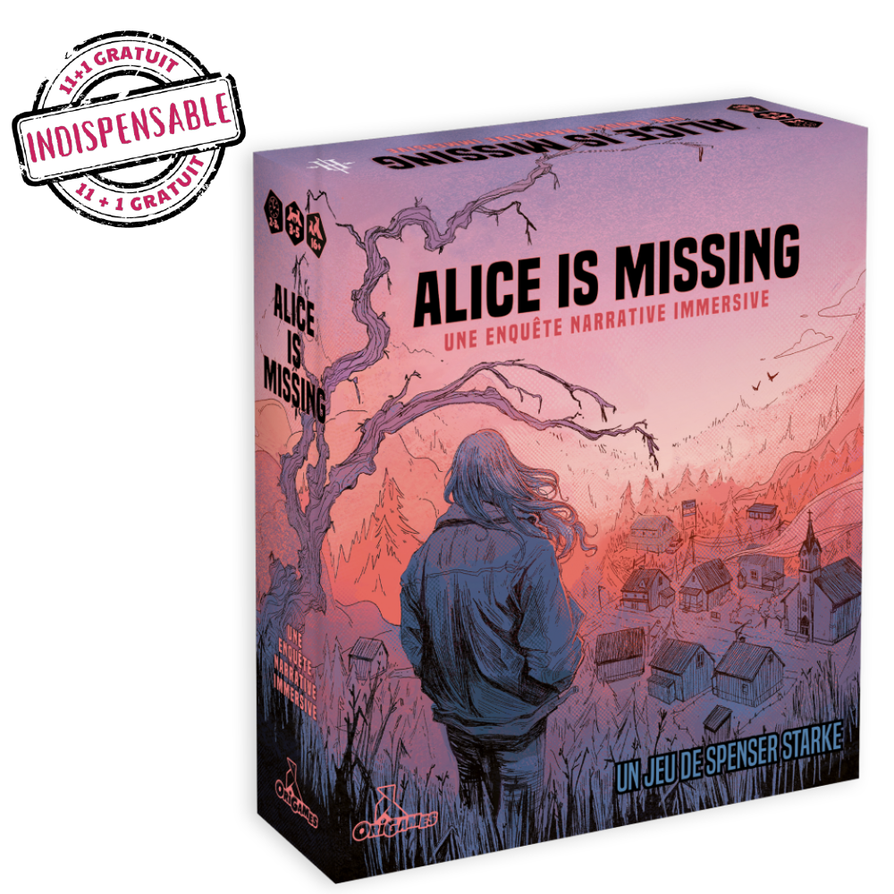 ALICE IS MISSING est une expérience ludique, entre jeu d’enquête et jeu de rôle. Alice Briarwood, une lycéenne de la paisible ville de Silent Falls en Californie du Nord, a disparu. Le jeu se déroule dans le silence. Utilisez votre téléphone portable pour envoyer des textos à votre groupe de joueurs et de joueuses, afin de découvrir des indices, et comprendre ce qui est arrivé à Alice. Durant les 90 minutes de la bande-son originale, c’est à vous et à votre groupe de démêler les fils de l’enquête. Développez progressivement la narration grâce aux événements des cartes individuelles et racontez…