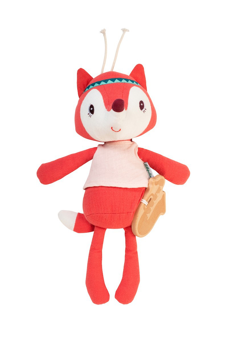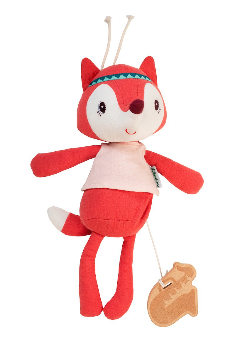 “Quand vient l’heure d’aller au lit, Alice la renarde sort son saxophone. Sur les notes de “yesterday once more””, elle accompagne bébé dans les bras de Morphée. Coton organique doux. Lavable à 30°. ”
