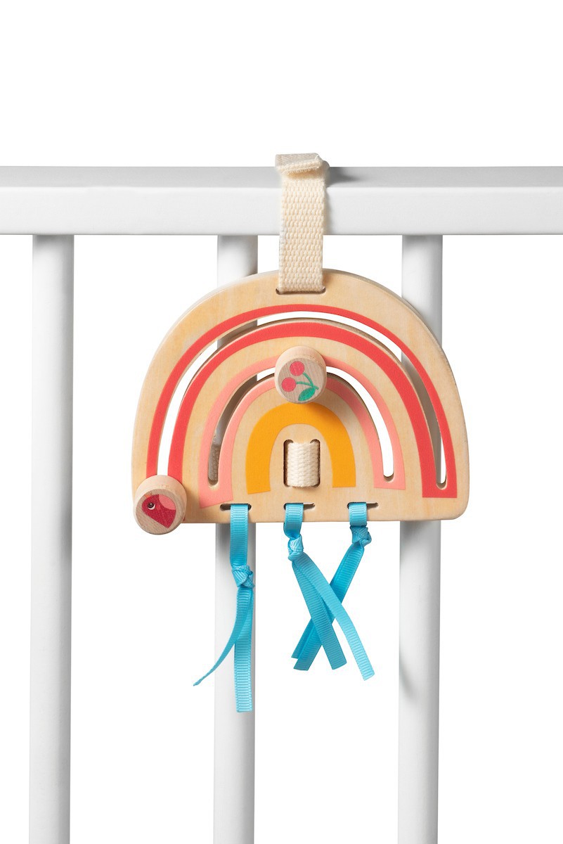 “Ce set, constitué de 3 éléments indépendants, se fixe aisément au parc de bébé. Chaque panneau est composé de plusieurs matières et propose différentes activités. Le petit oiseau se glisse dans les bras d’Alice, la cerise et le petit oiseau se déplacent sur l’arc-en-ciel et la pomme est un miroir. Un monde de nouvelles expériences s’ouvre à votre tout-petit. ”