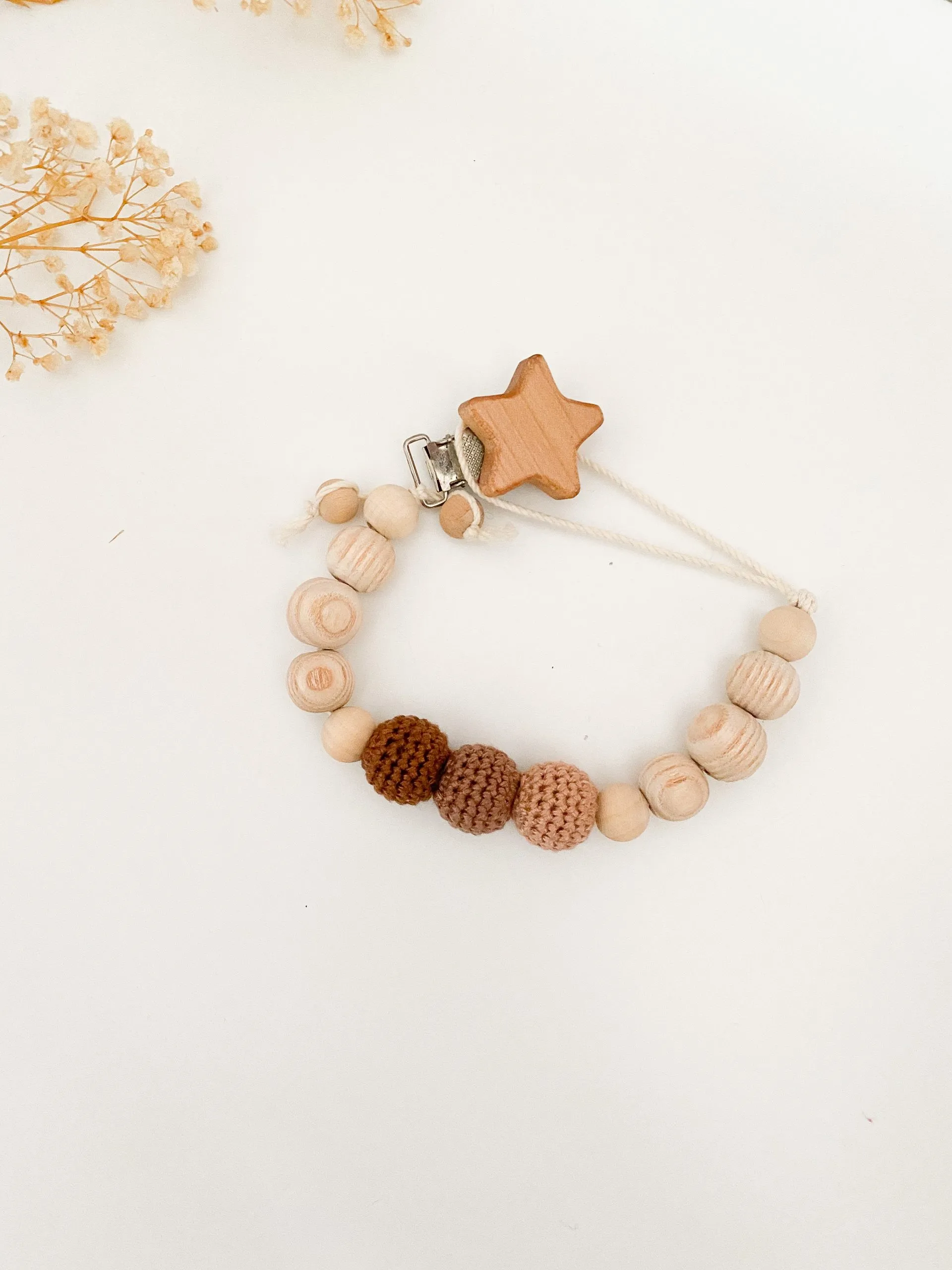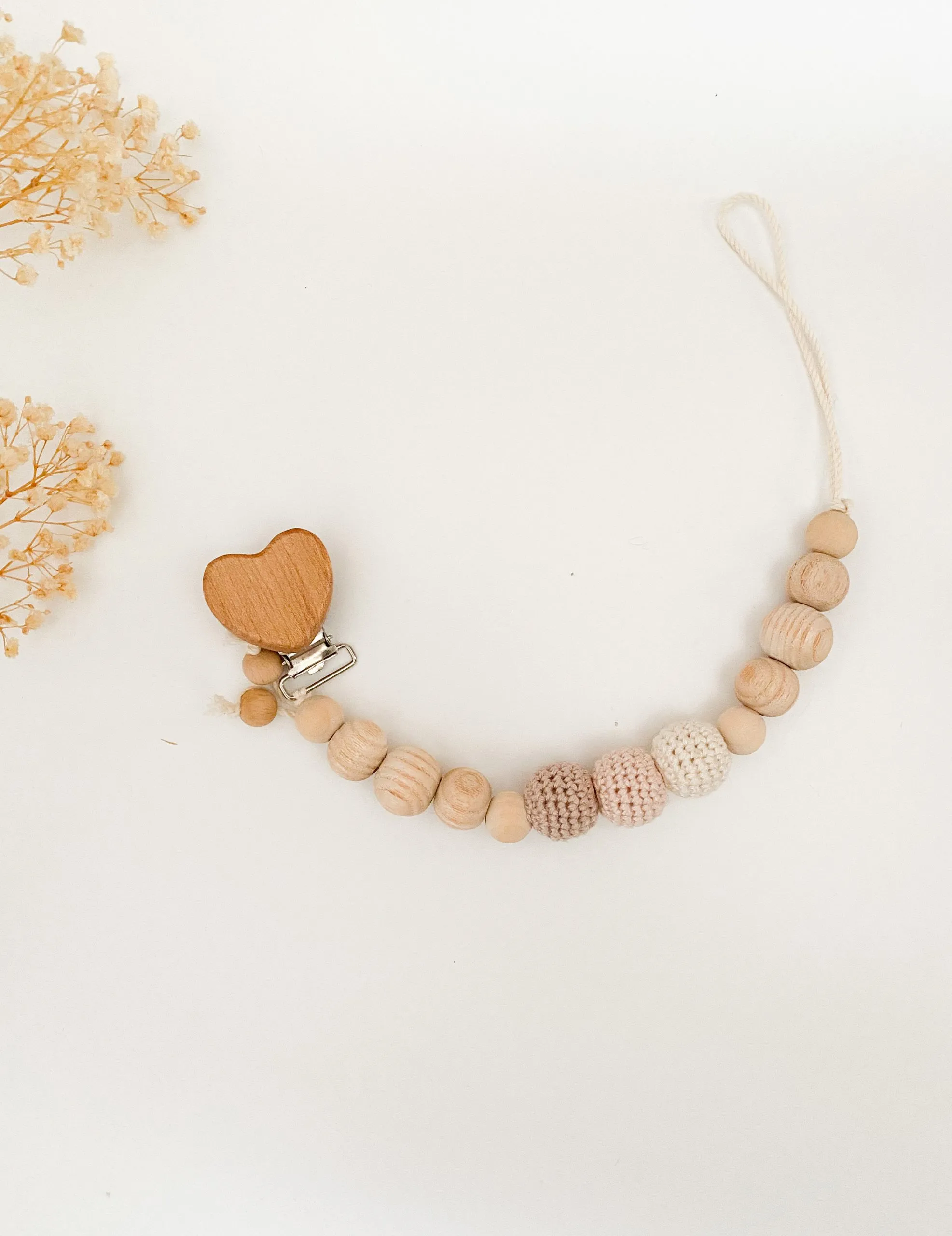 Attache Tétine Perles Couleurs en Bois naturel et en Coton Biologique