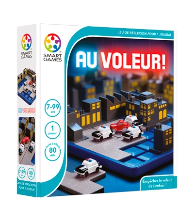 Appel à toutes les unités ! Un voleur au volant d’une voiture rouge tente de s’échapper! Un malfaiteur au volant d’un véhicule rouge roule vers l’est en direction du centre ville. Le suspect s’avère dangereux et armé. Bloquez toutes les routes et appréhendez-le! Dans Au Voleur, vous êtes le Commandant de police chargé de positionner ses hommes afin de bloquer toutes les issues et d’arrêter le suspect. Les 80 missions proposées par Au Voleur permettront tant aux enfants qu’aux adultes de réaliser des courses-poursuites toujours plus passionnantes.