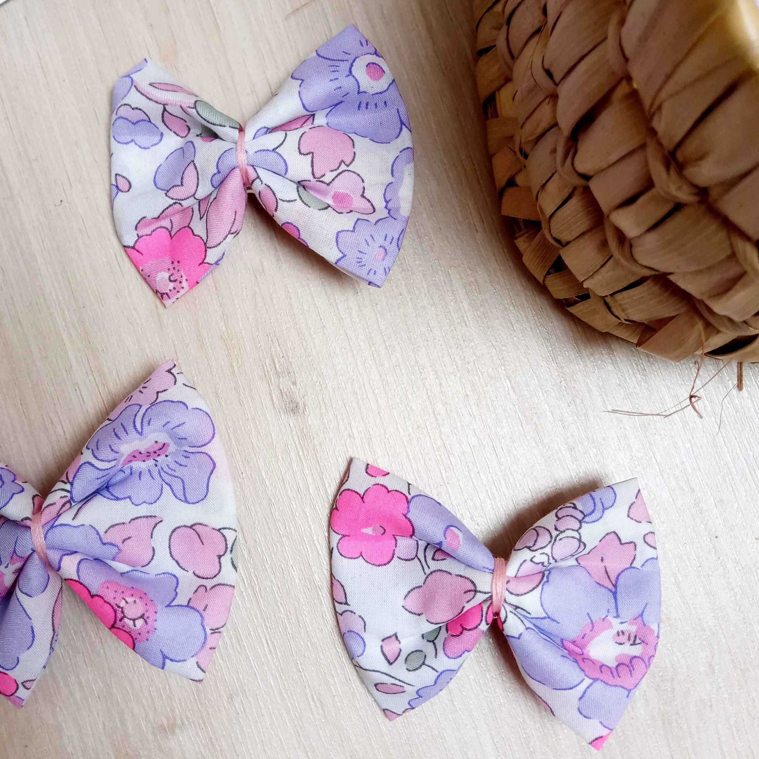 Barrettes avec nœud en coton et pince croco ou barrette anti glisse