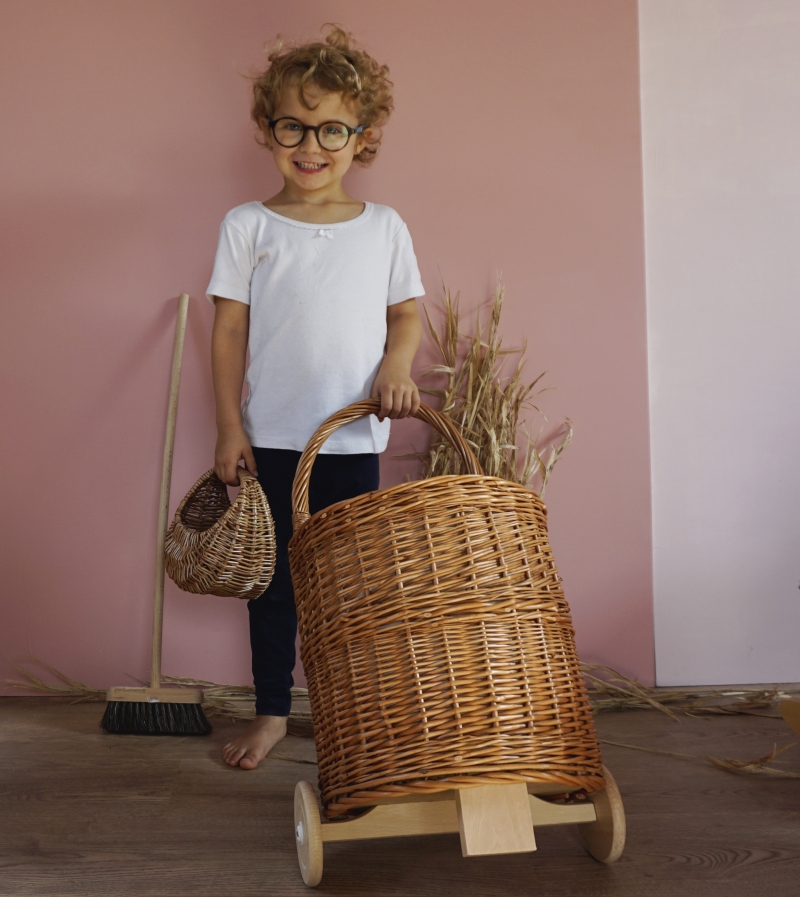 Tressé à la main, en Pologne, le caddy en osier d’Emma est très pratique pour emporter partout ses courses et tous ses trésors. Un joli décor aussi pour sa chambre! + 3 Taille 25X30X55 Age +3 Y
