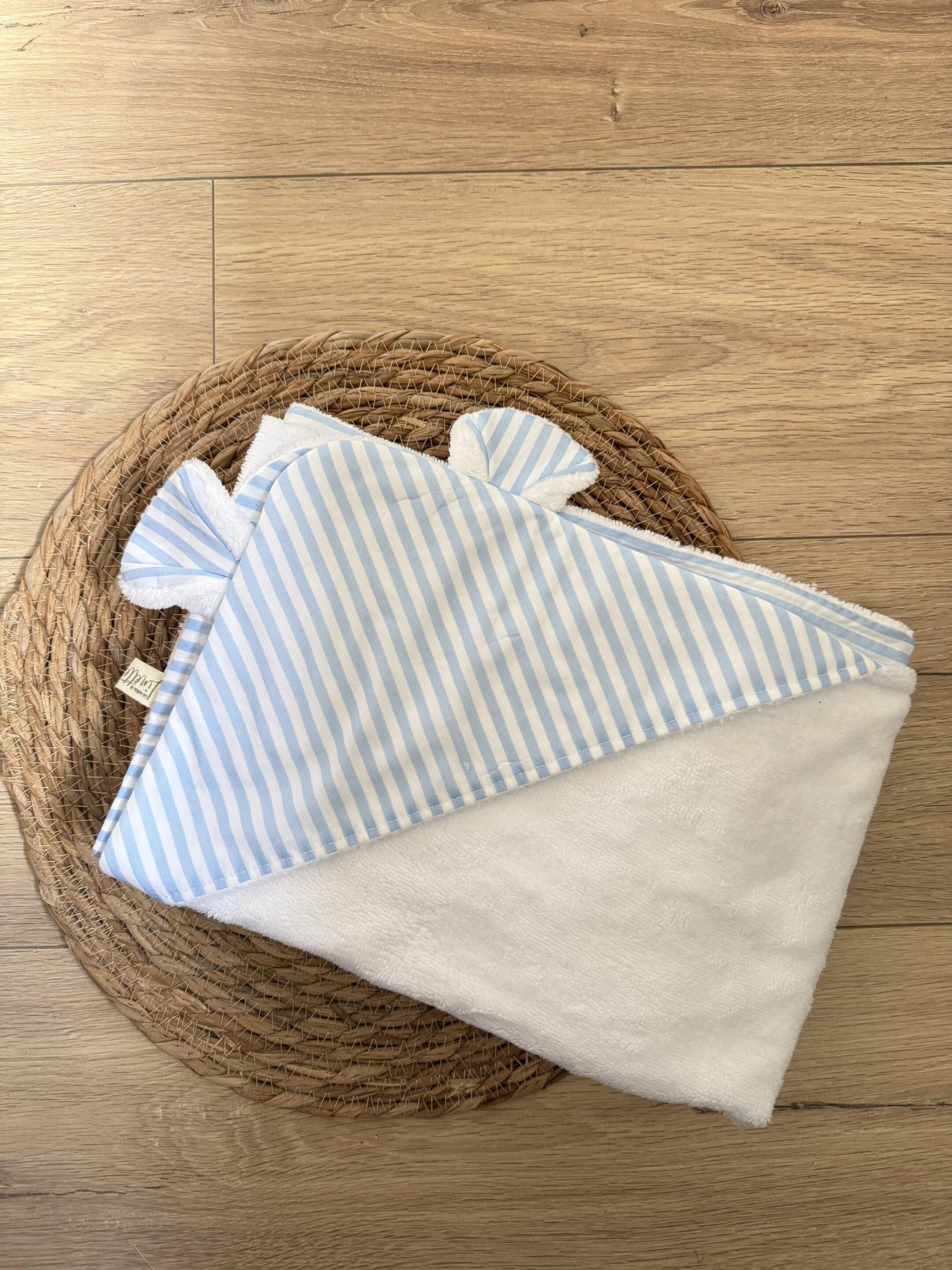 Cape de bain, coton rayé bleu ciel