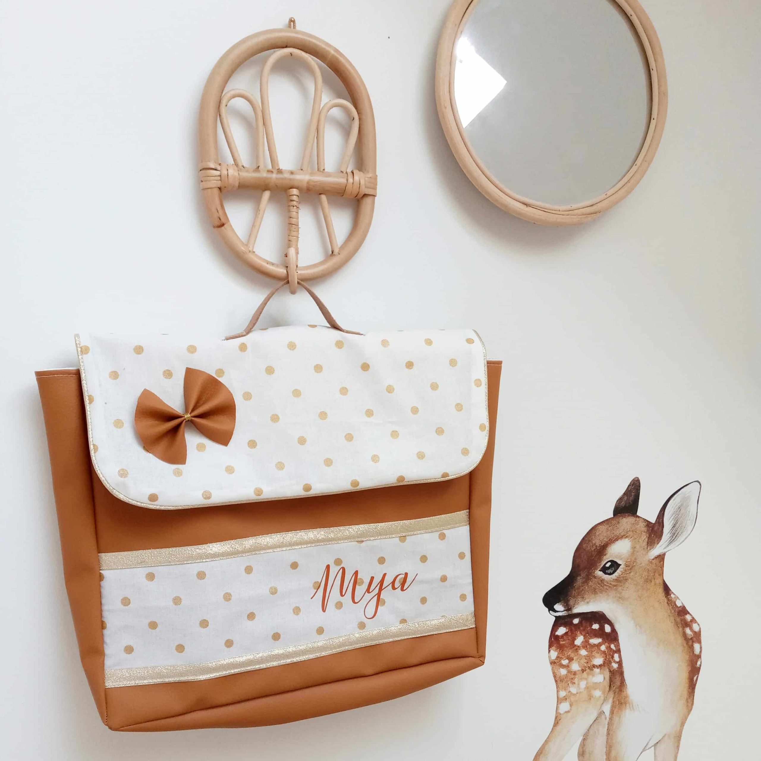 Cartable souple pour enfant personnalisable en simili cuir et coton.