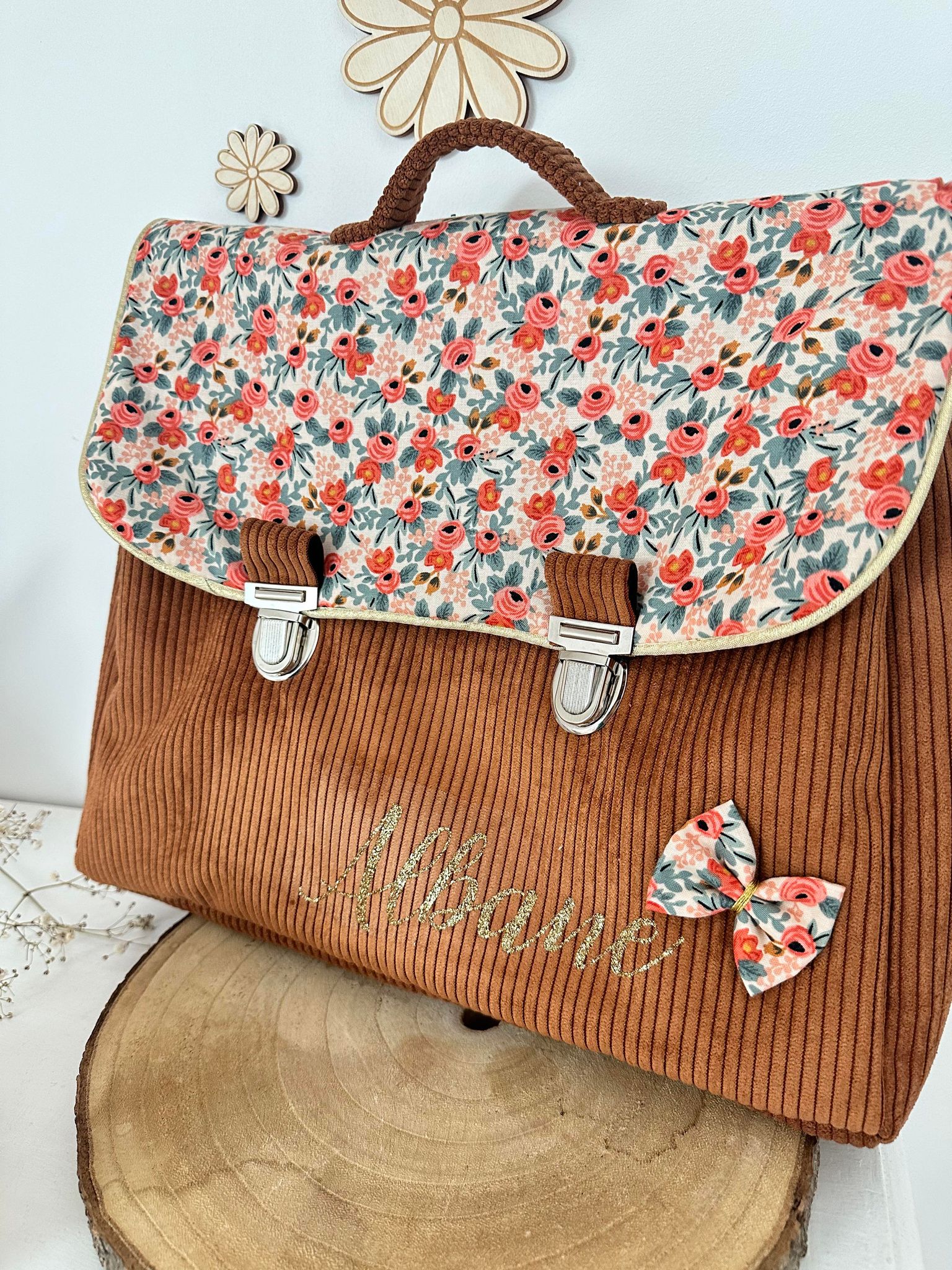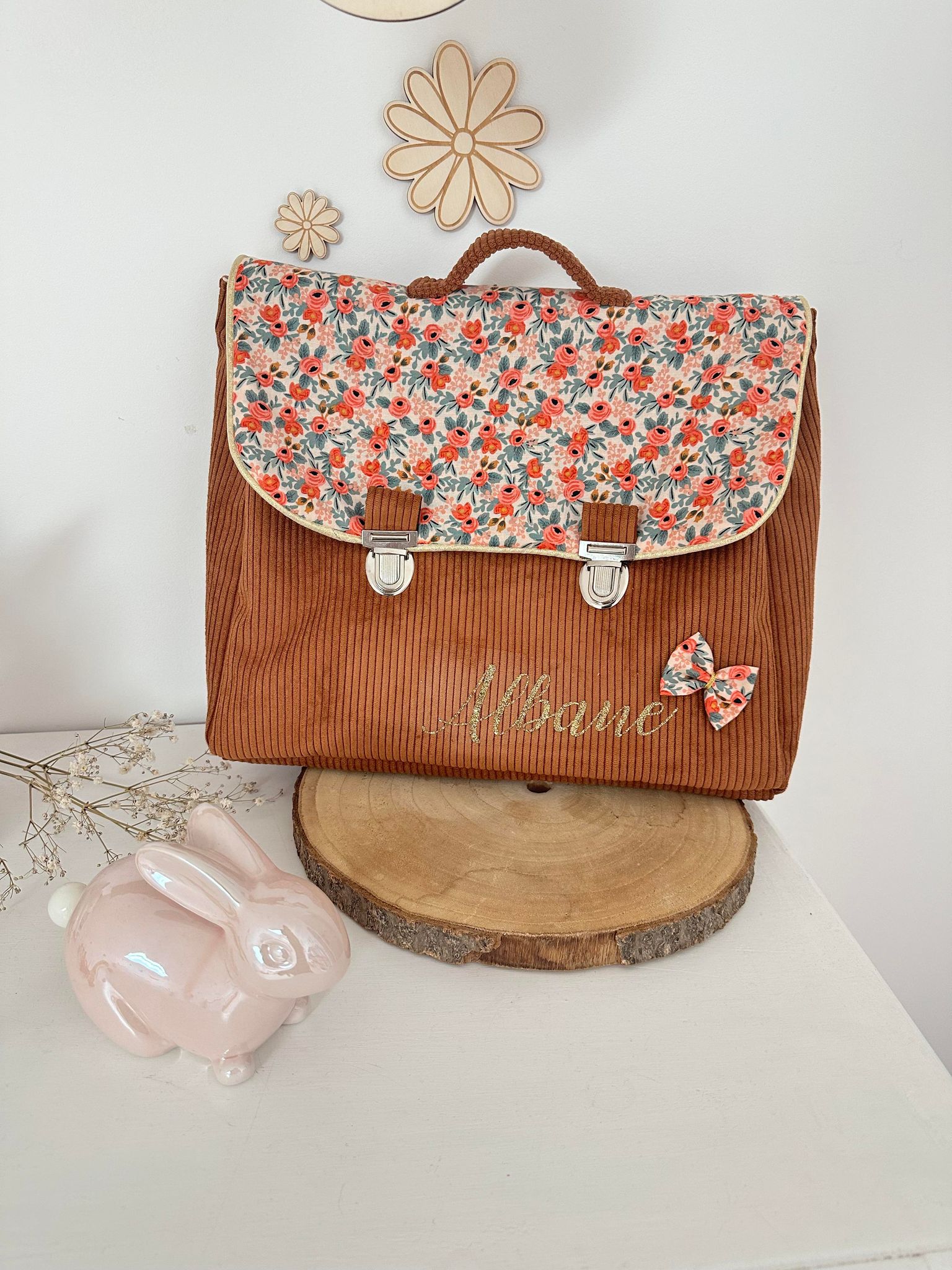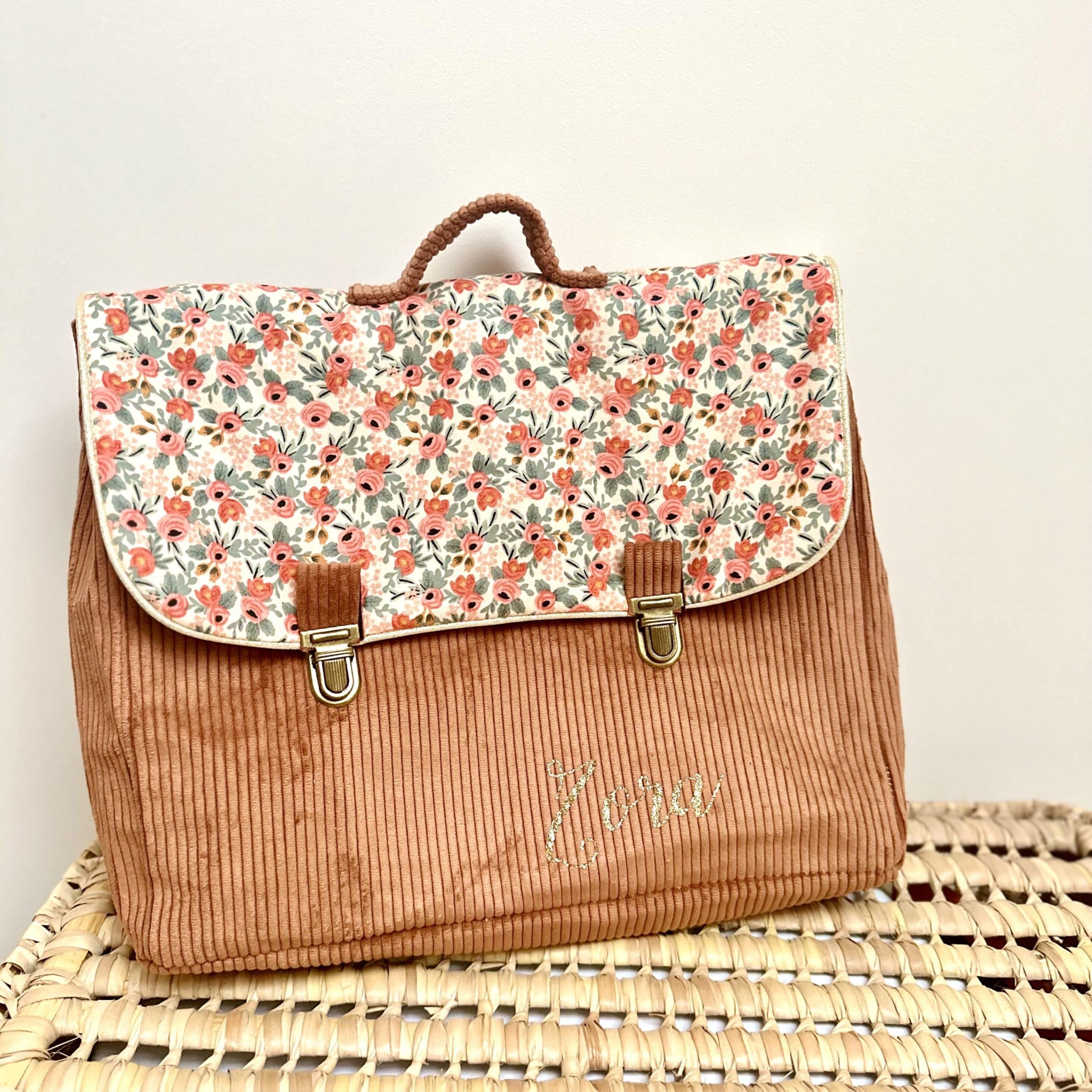 Cartable, velours côtelé écureuil et coton manon