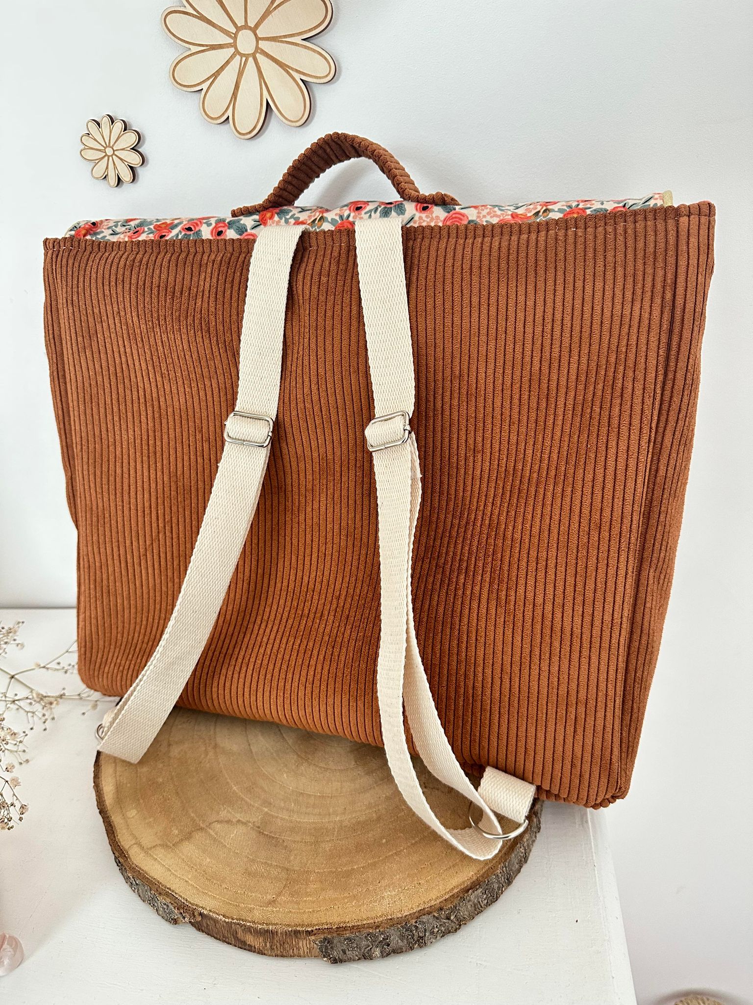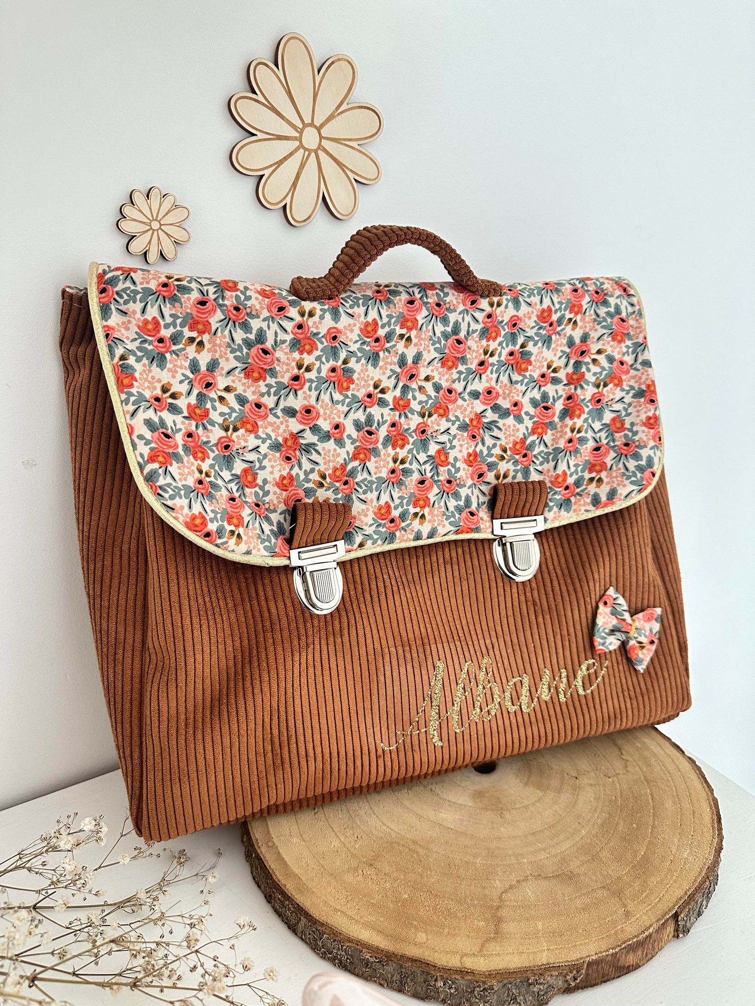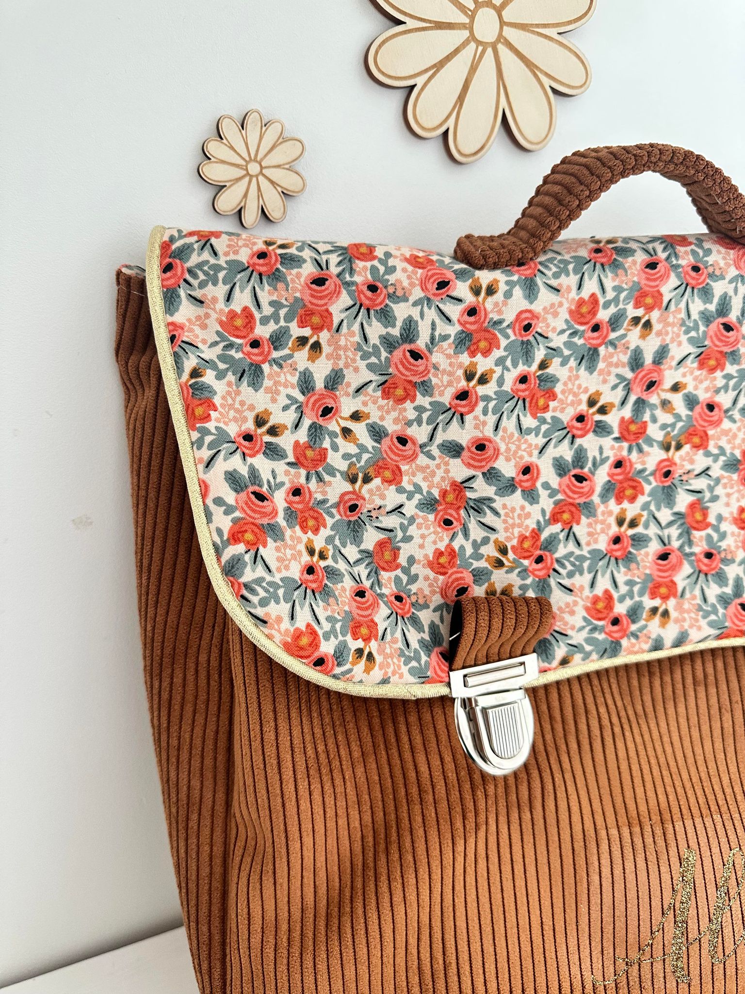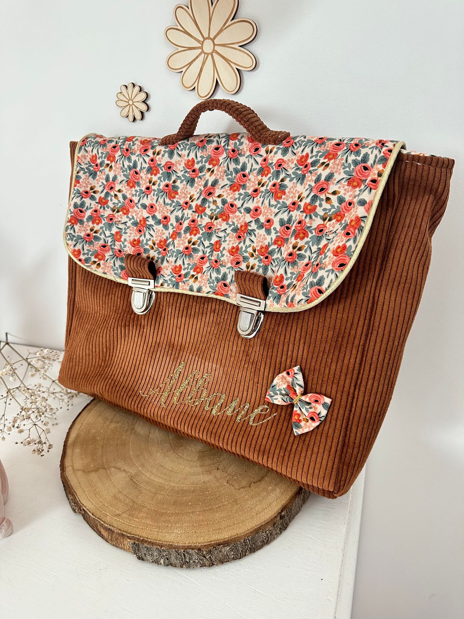 Cartable, velours côtelé écureuil et coton manon
