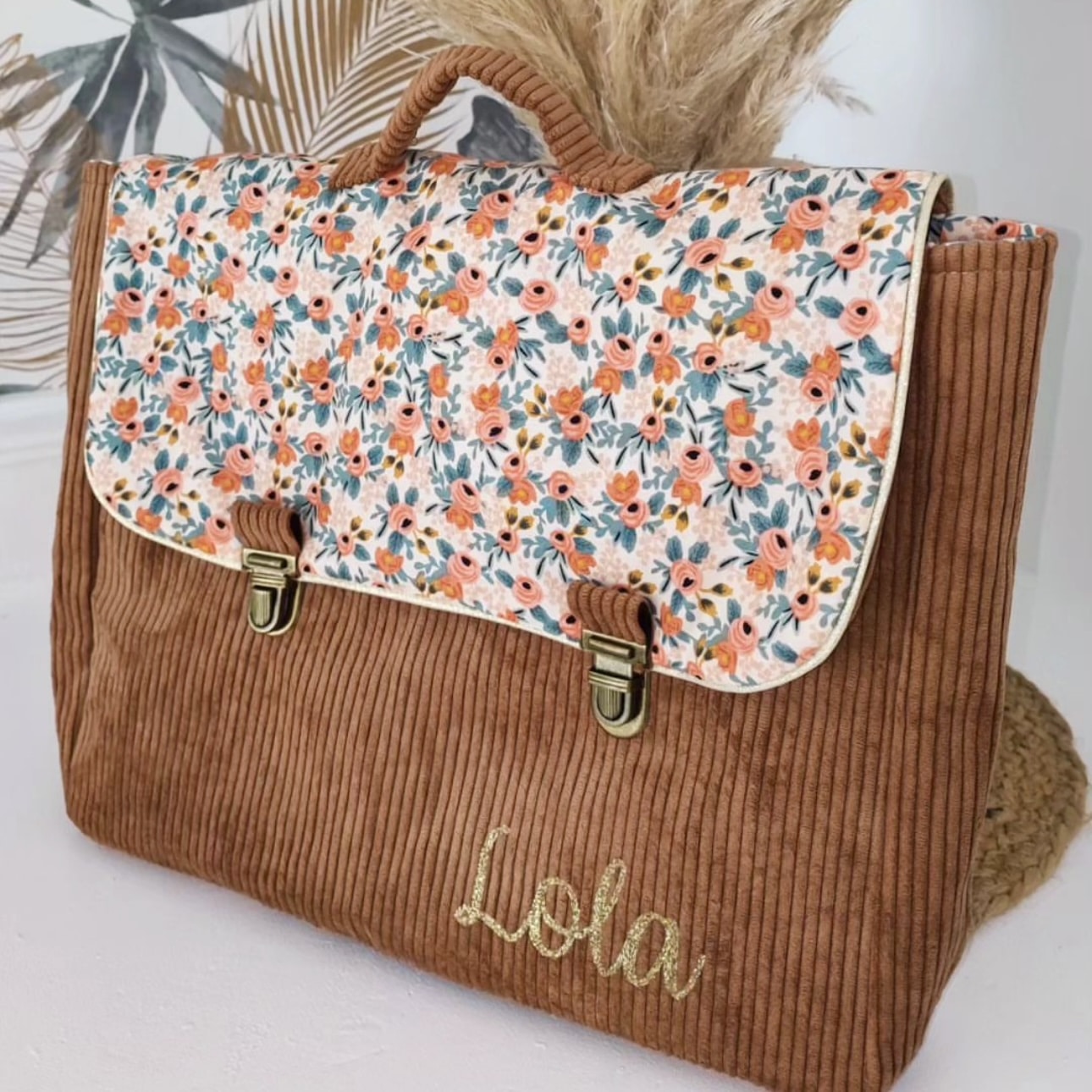 Cartable souple pour enfant personnalisable en velours côtelé et coton.