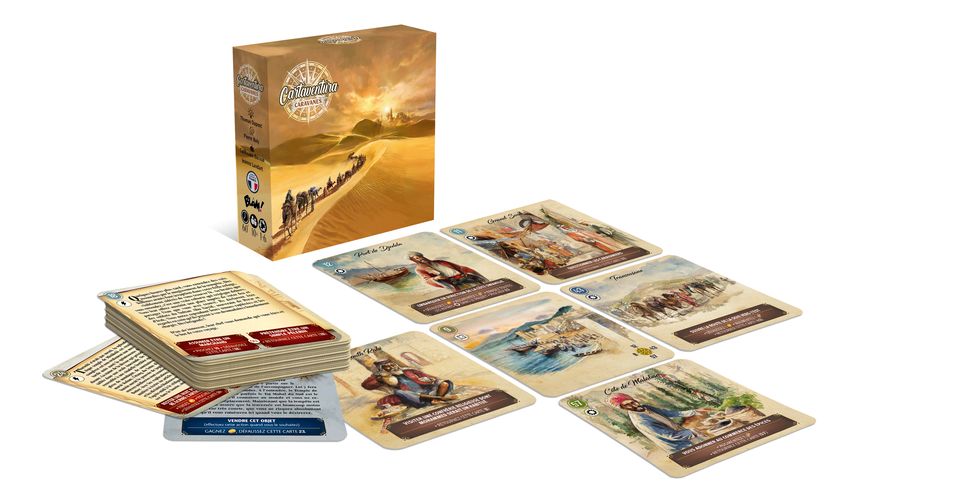 Buty Illustrateur : Guillaume Bernon Contenu – 70 cartes – 1 livret historique Cartaventura est une collection de jeux de cartes narratifs au scénario immersif et aux multiples dénouements ! Les joueurs construisent leur aventure à l’aide des cartes qui proposent différentes options. Ils réfléchissent ensemble aux meilleurs choix afin de suivre la trace du héros du jeu. Dans Caravanes, parcourez la Route de la Soie à la recherche d’Ibn Battuta en 1331. Cartaventura propose des jeux dans différentes époques, chacune retranscrite avec qualité et fidélité. Les joueurs replongent dans l’Histoire grâce à des scénarios riches et des illustrations à l’aquarelle,…