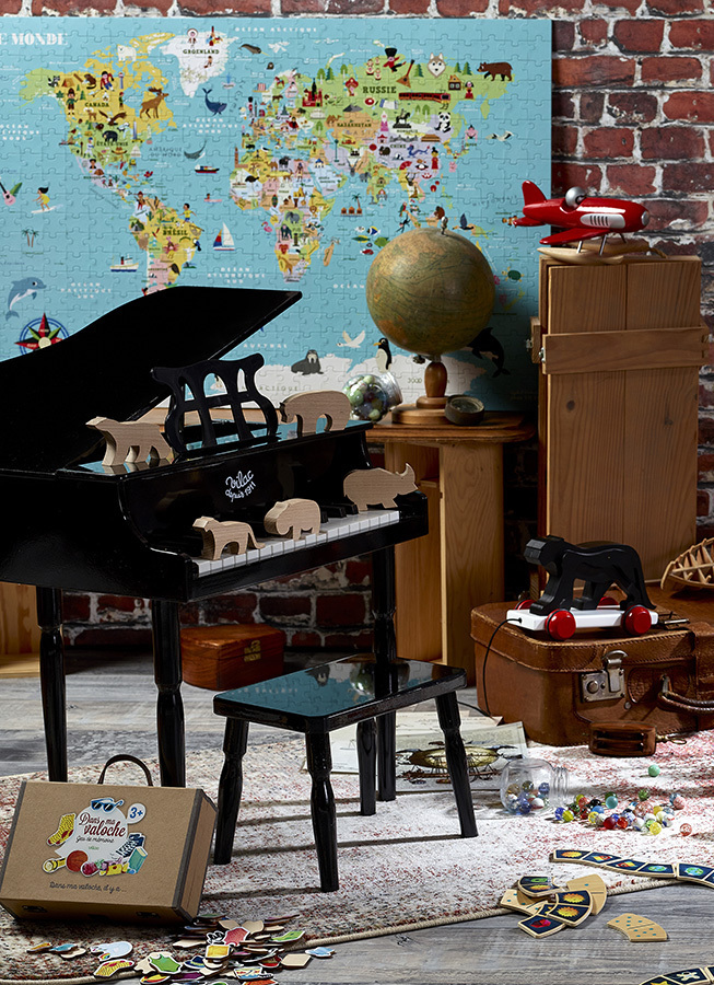une carte du monde magnétique de 86 pcs en bois illustrée par Ingela P. Arrhenius pour découvrir les pays, les villes, mers et océans, spécialités etc en s’amusant !