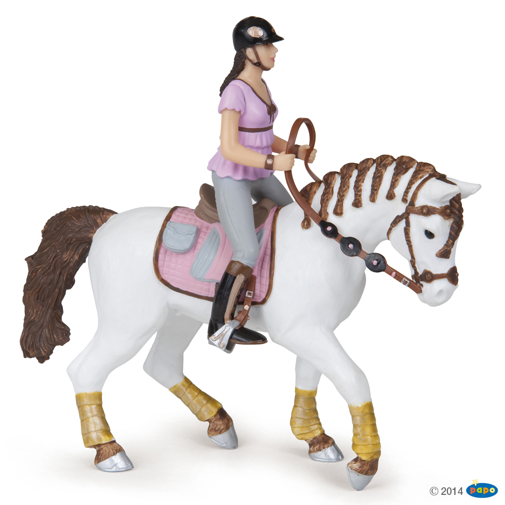 Cavalière fashion rose Chevaux, poulains et poneys La cavalière fashion resplendit de milles feux avec son cheval. Ils sont tous deux assortis et sont tous deux prêts pour la course. Reference: 52006 Dimensions : 4.50 cm x 3.00 cm x 9.00 cm (Lxlxh) Poids : 0.01 Kgs