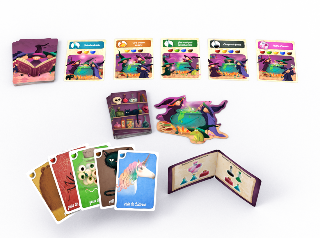 Les enfants consultent le Livre des Potions et jettent dans le chaudron les ingrédients répugnants du laboratoire : bave de crapaud, jus de vers de terre… et la potion magique est prête à être dégustée ! Descriptif : Chaque joueur choisit un manuel de sorcellerie qui lui donne le choix entre 2 «contrats» à remplir. Il faudra obtenir toutes les potions de l’une ou l’autre page. Pour obtenir les potions requises, il faudra jeter des ingrédients dans le chaudron ! Les joueurs peuvent aussi négocier et s’entraider, selon les intérêts de chacun. Découvrez les règles en pdf. Contenu : –…