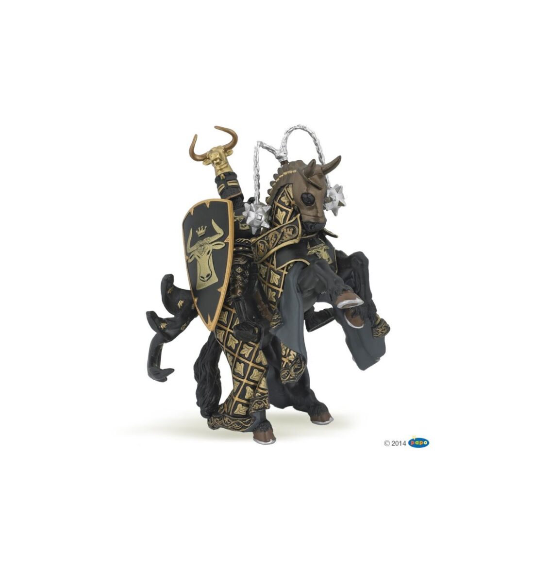 Equipé de son armure et de son heaume à cimier, le maître des armes taureau est prêt à partir au combat! Quoi quil en coûte il défendra son royaume contre l’envahisseur et pour cela il sait qu’il peut compter sur son fidèle destrier. Les cors résonnent sur le champ de bataille, la clameur monte parmi les chevaliers, il est temps pour lui de se saisir de son épée et de son bouclier orné d’un taureau. Reference: 39918 Dimensions : 15.00 cm x 6.00 cm x 9.00 cm (Lxlxh) Poids : 0.14 Kgs