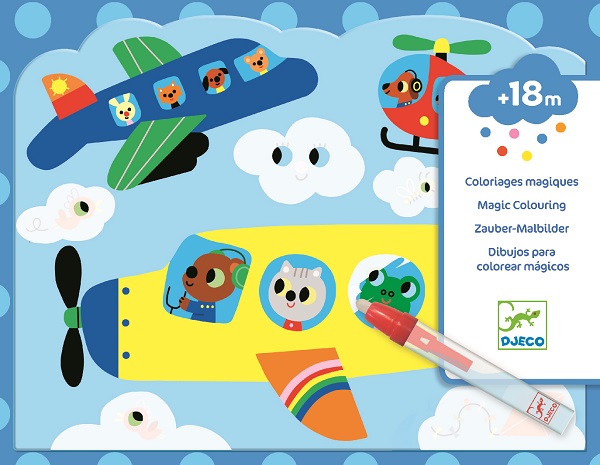 Découvrez le coloriage à l’eau caché dans le ciel de Djeco, une activité de coloriage originale pour les enfants dès 18 mois qui vont s’amuser à colorier des illustrations avec de l’eau. Un coloriage magique car les couleurs se révèlent lorsque votre enfant passera son crayon dessus. Faîtes sécher et recommencer. 4 illustrations souple et un crayon magique. La pochette contient 4 planches illustrées en plastique souple et un crayon à eau. Dimensions de la pochette : 31,5 x 22 x 1,5 cm NB: le crayon s’ouvre dans le sens inverse des aiguilles d’une montre dj09061