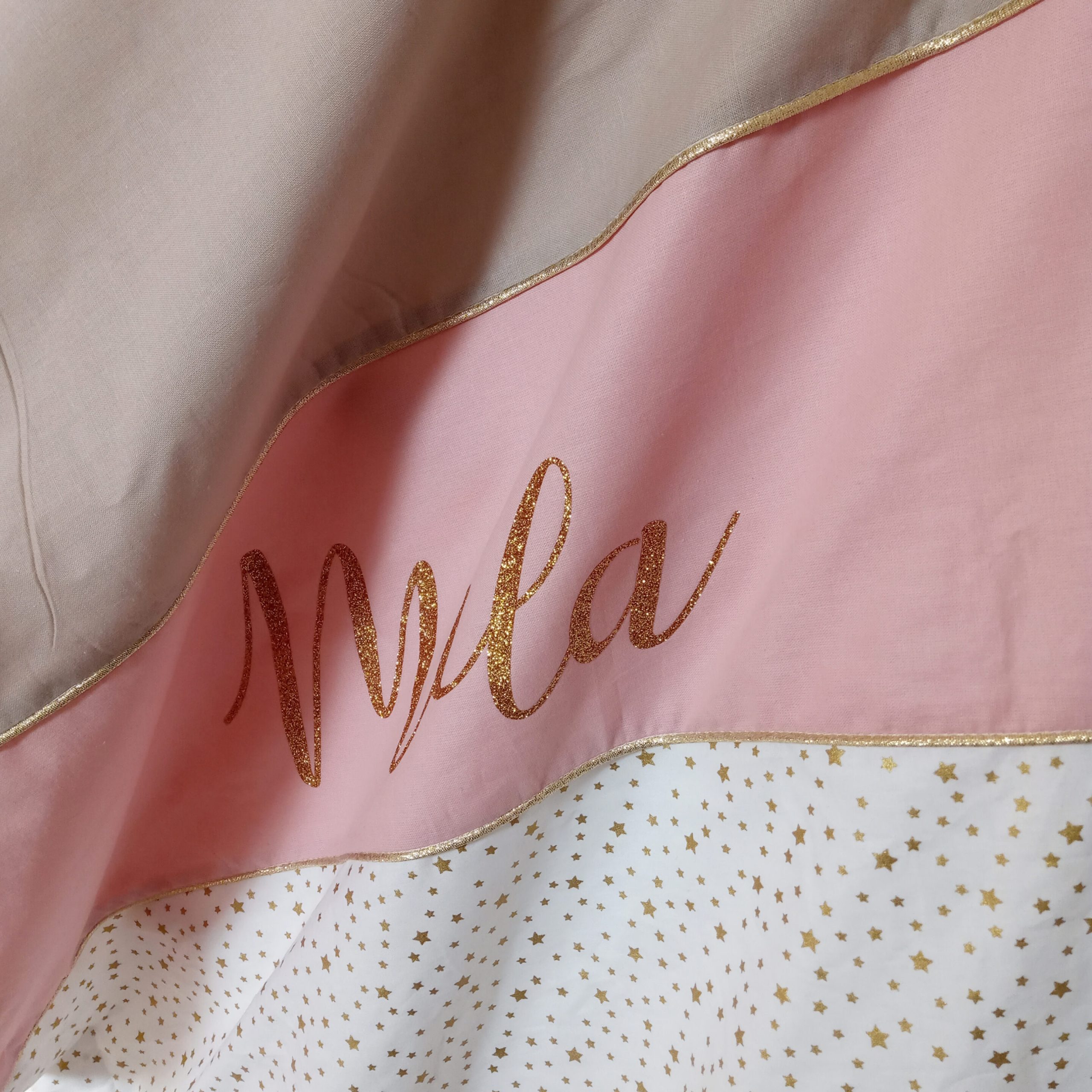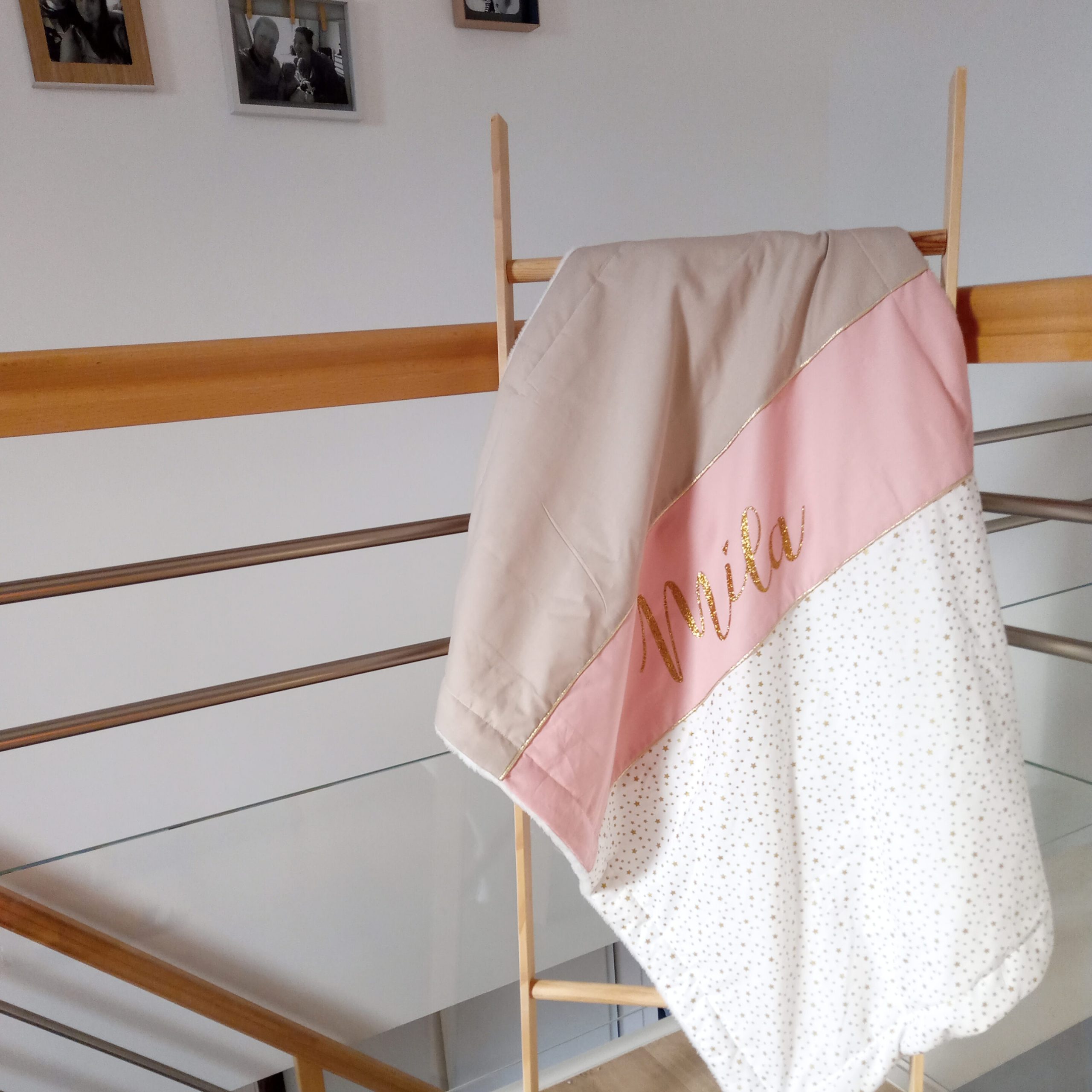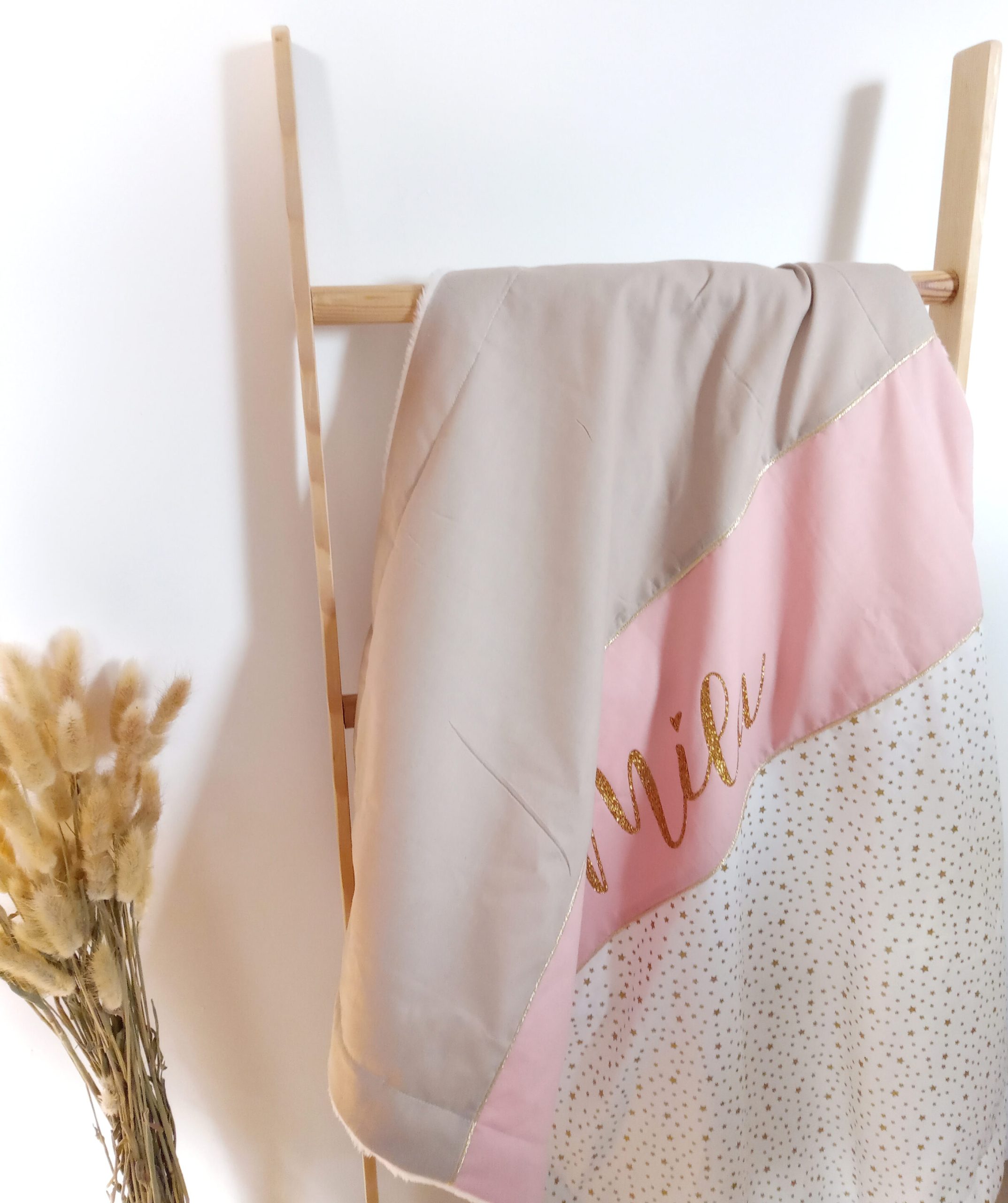 Couverture, étoiles dorées, uni ficelle et vieux rose