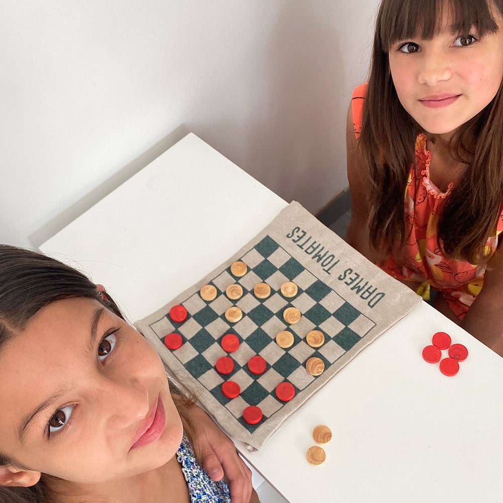 Le jeu en bois Dames Tomates est conseillé aux enfants comme aux adultes. Nous le préconisons pour les enfants dès 5 ans, comme le jeu de dames classiques. Dames Tomates est d’autant plus abordable pour les enfants que le damier est constitué de 64 cases (8 cases par 8 cases) comme le jeu de dames originel.
