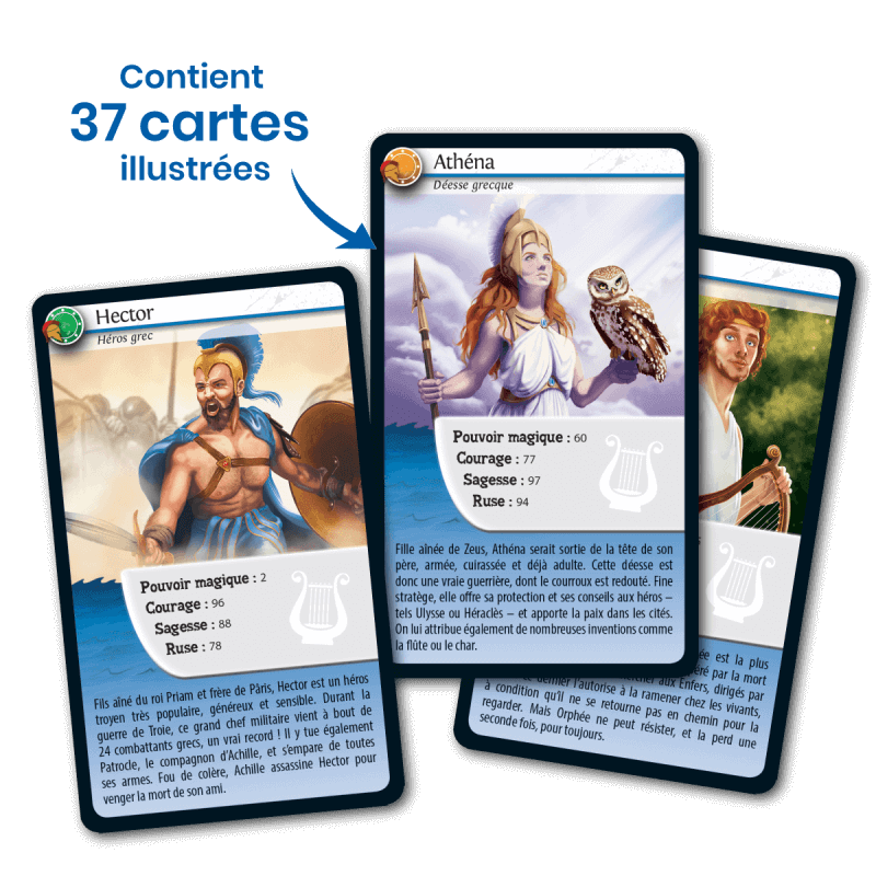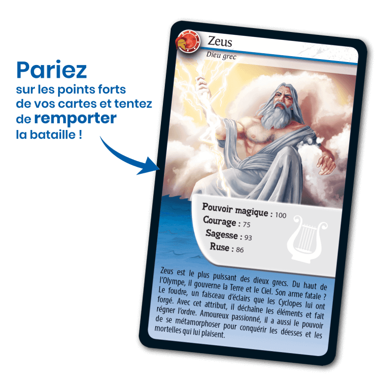 Défis Nature – Mythologie, Héros et Dieux vous emmène à la rencontre des personnages emblématiques de la Mythologie ! Découvrez leurs facultés exceptionnelles, puis pariez sur leurs points forts pour collecter toutes les cartes du jeu et remporter la partie. Alors, prêts à relever le défi ? Le principe du jeu : Le principe de Défis Nature – Mythologie, Héros et Dieux est simple : les enfants de 7 ans et + parient sur les points forts des personnages. Le joueur qui possède la plus forte caractéristique remporte les cartes des autres joueurs. Le premier à collecter toutes les cartes…