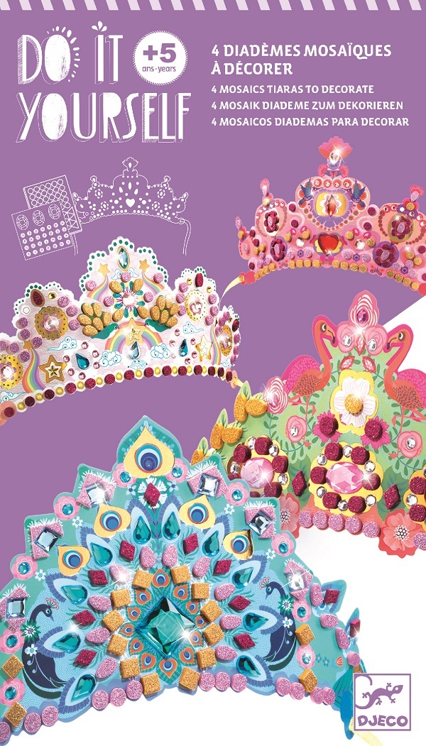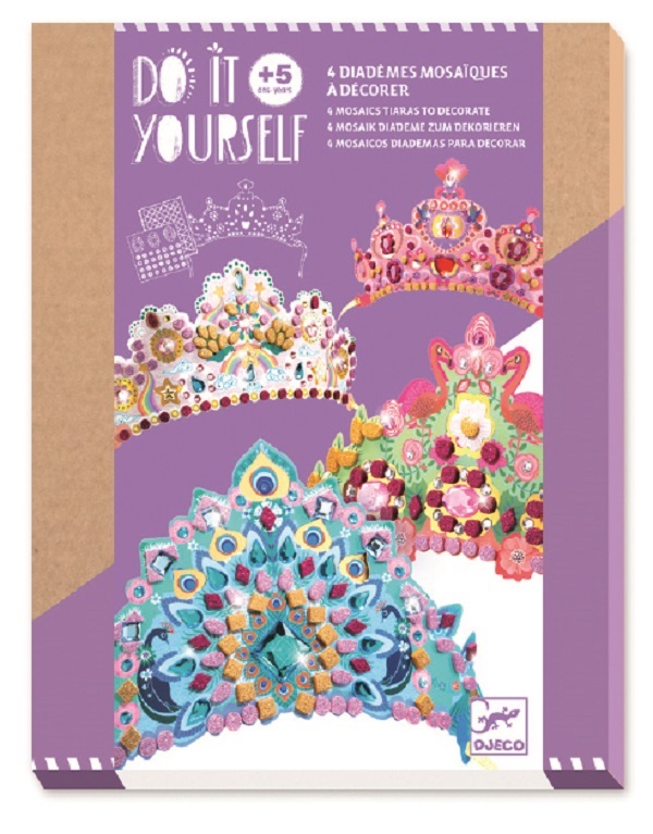 Découvrez les diadèmes mosaïques à décorer comme une princesse de la collection Do It Yourself de Djeco, un coffret créatif pour les filles à partir de 5 ans avec 4 diadèmes à décorer avec de la mosaïque. Une activité manuelle qui développe la patience et la dextérité, 3 couronnes en carton souple à agrémenter de mosaïques autocollantes à paillettes et de stickers pierres précieuses pour des créations scintillantes. La collection Do it yourself de Djeco est une collection de réalisations ludiques et accessibles conçue pour un ou plusieurs enfants, ce kit deviendra vite indispensable pour passer un moment récréatif seul ou partagé avec d’autres enfants…