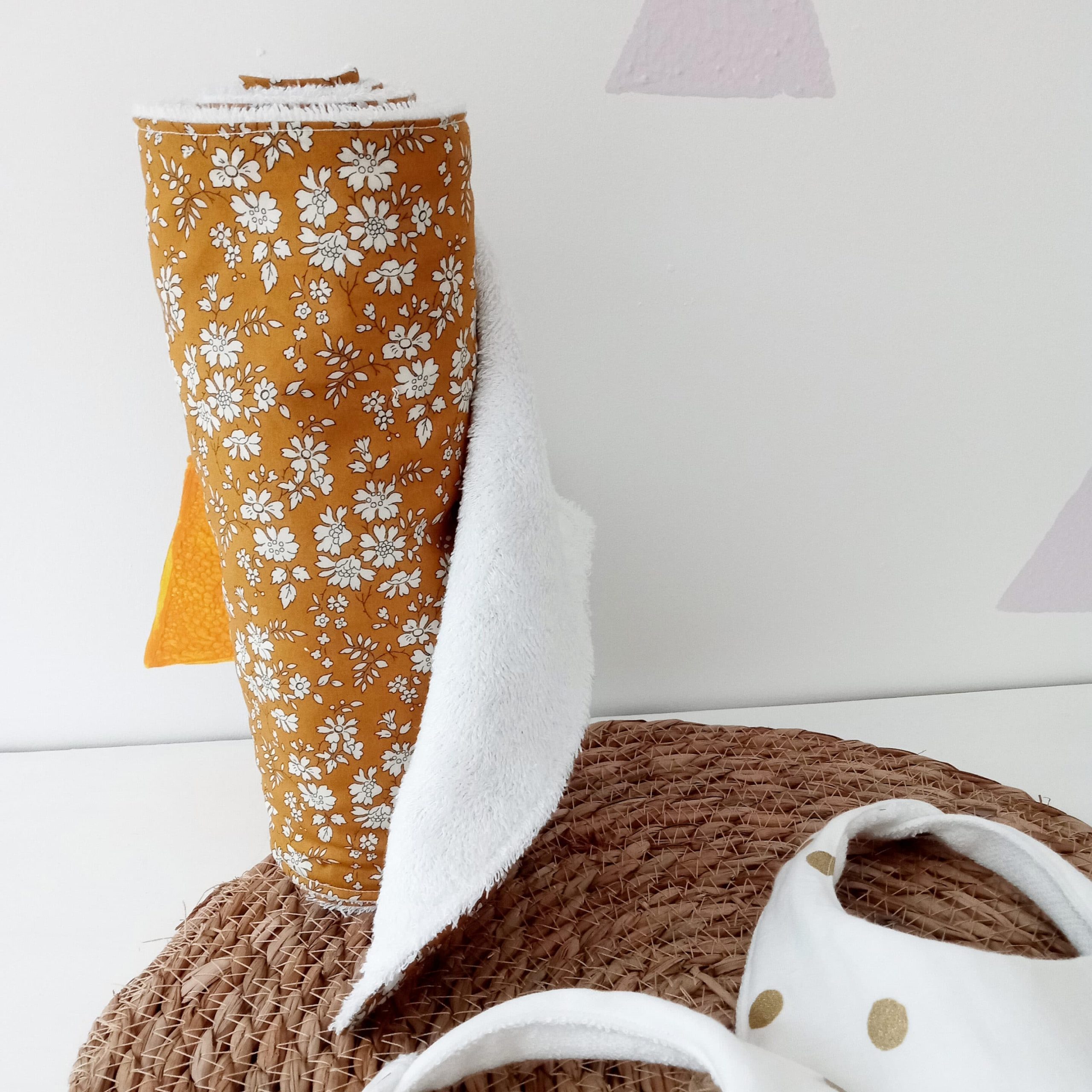Anneau de dentition, bouteille de lait et fleuri rose et curry