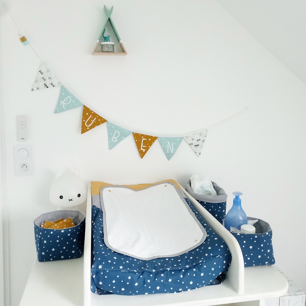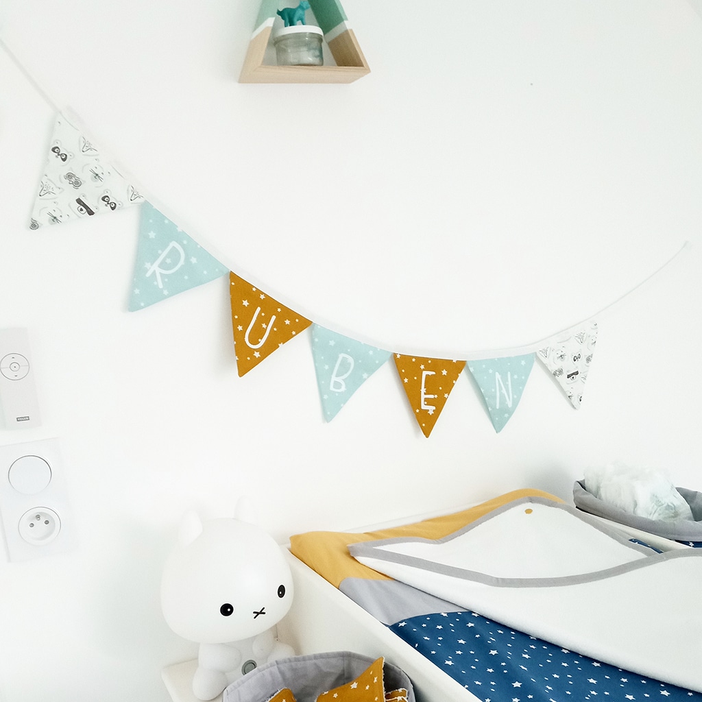 Parfaire la décoration de cette chambre où tout a été pensé dans les moindres détails, c’est exactement ce que vous permet de faire cette jolie guirlande de fanions. Vous pouvez la personnaliser à l’infini pour qu’elle trouve sa place dans cette décoration singulière. Déterminez le nombre de fanions et ajoutez le prénom de votre tout-petit, il ne vous restera qu’à l’afficher fièrement sur le mur de votre choix.