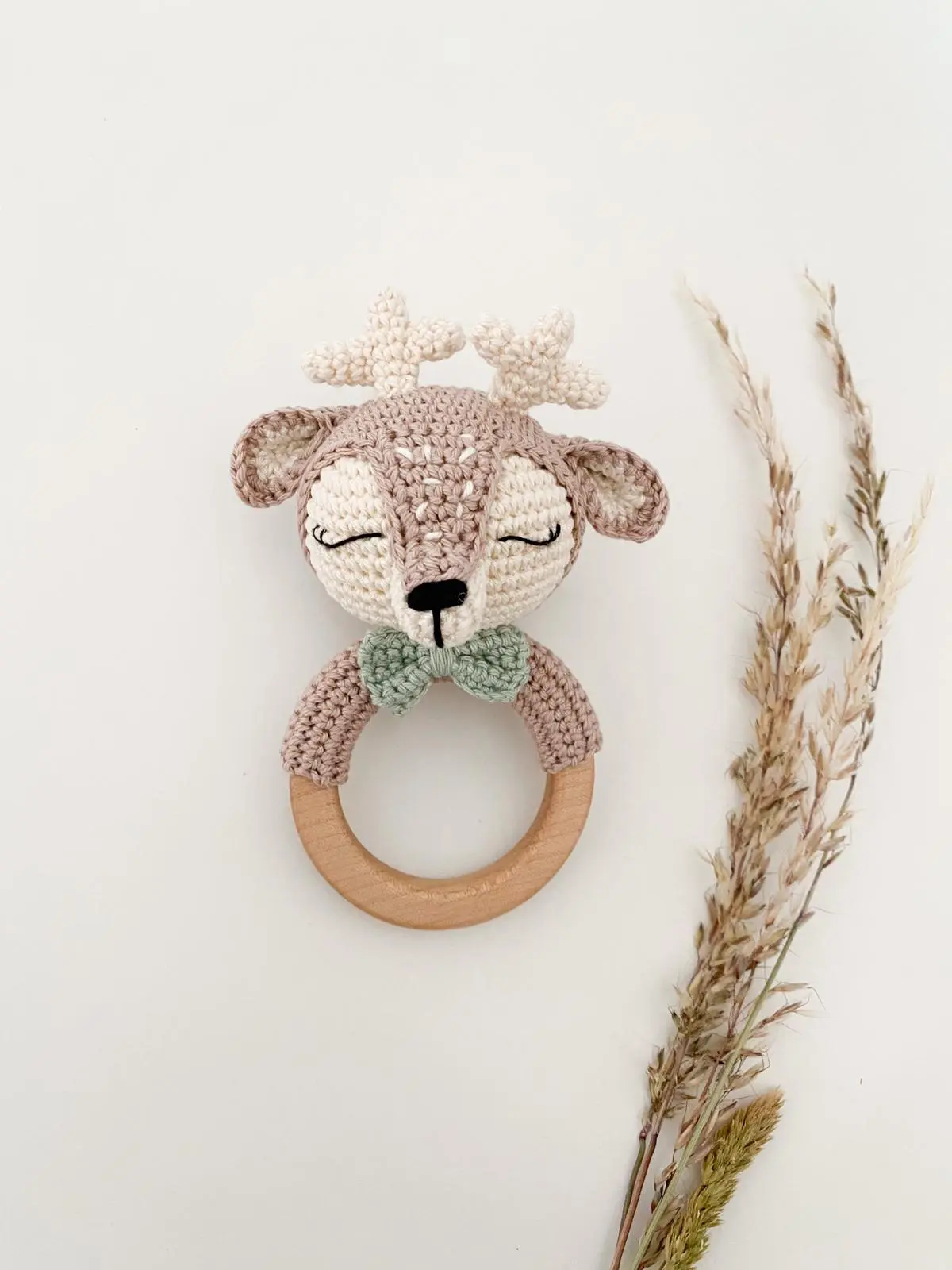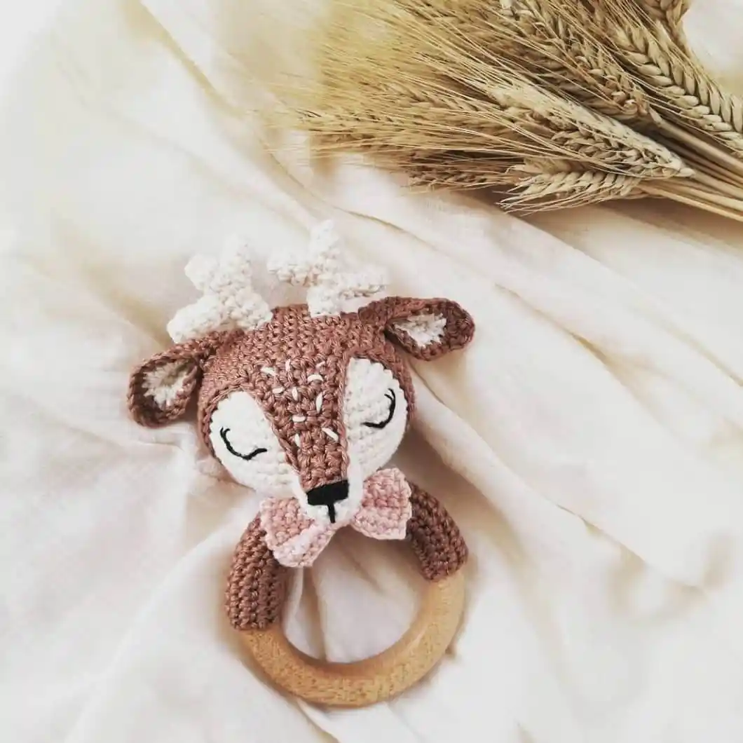 Hochet Cerf en Coton Bio et Bois Naturel Essentiel dès la naissance, le hochet cerf sera le compagnon idéal de votre bébé. Le hochet a été fabriqué en France en utilisant seulement des matières naturelles qui contribuent à la sécurité des bébés. Léger et petit, il vous suit partout : pour une promenade, à la maison, ou chez grand-mère.