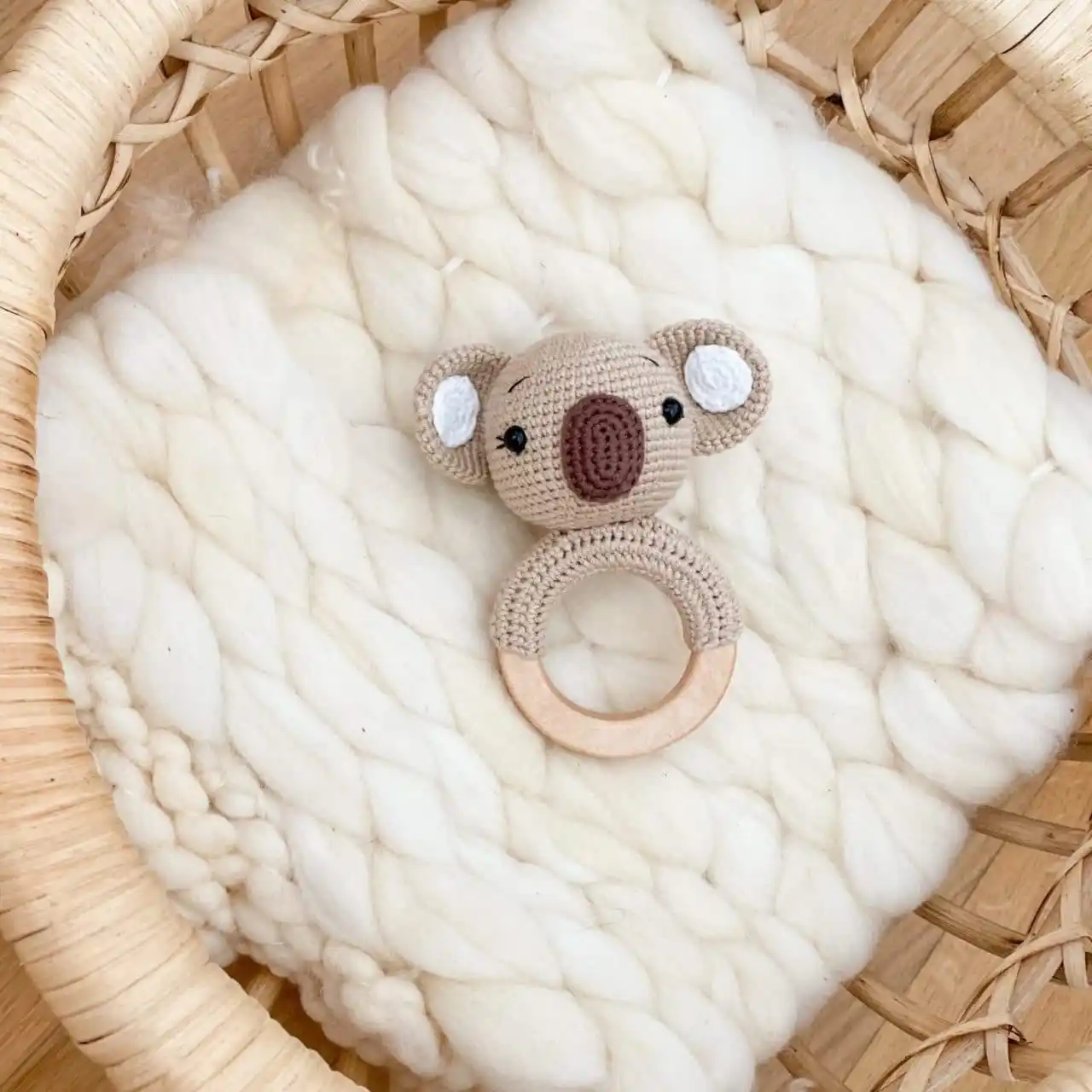 Hochet Koala en Coton Bio et Bois Naturel Vous désirez offrir un cadeau original pour une naissance ou pour un anniversaire ? Petit Poney et Cie vous offre précisément ce dont vous avez besoin. Ce petit hochet koala en coton biologique et bois naturel propose différentes formes et textures qui vont particulièrement plaire au tout-petit. Grâce à celui-ci, plusieurs sens seront stimulés comme la vision, le toucher et le gout.