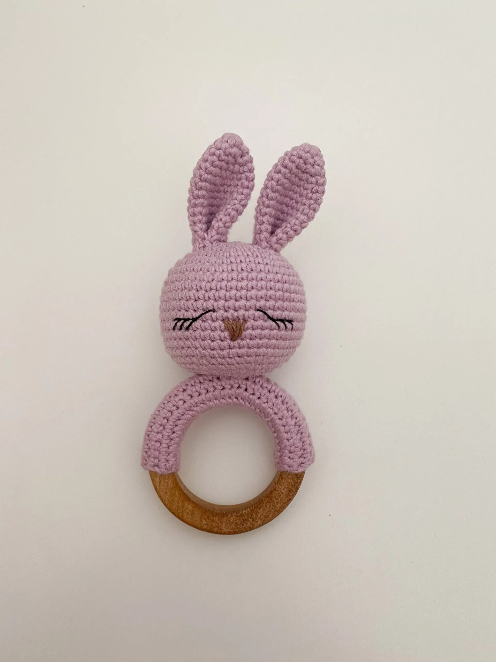 Hochet Lapin Dodo en Coton Bio et en Bois Naturel