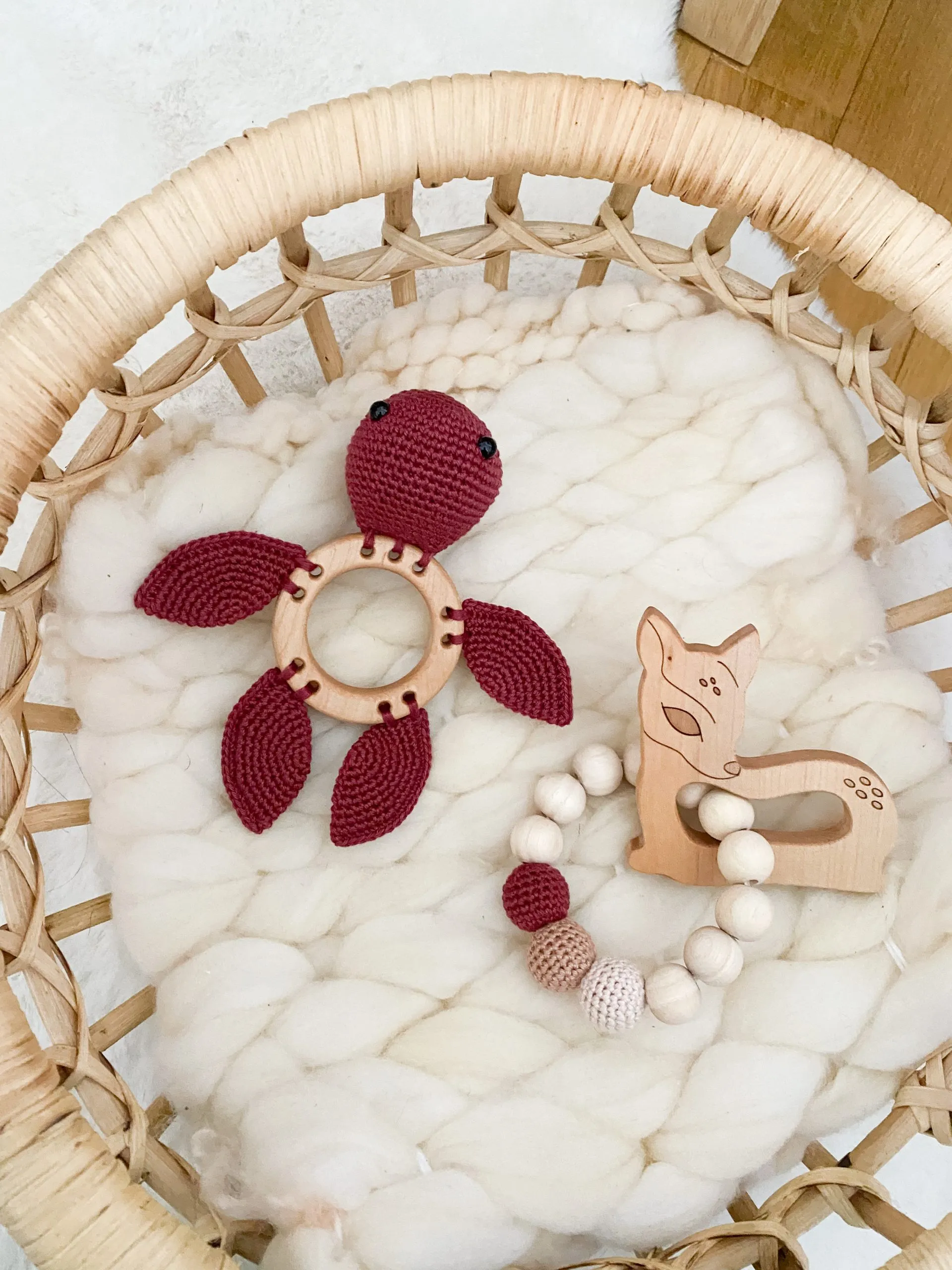 Hochet Tortue Marine en Coton Biologique et en Bois Naturel