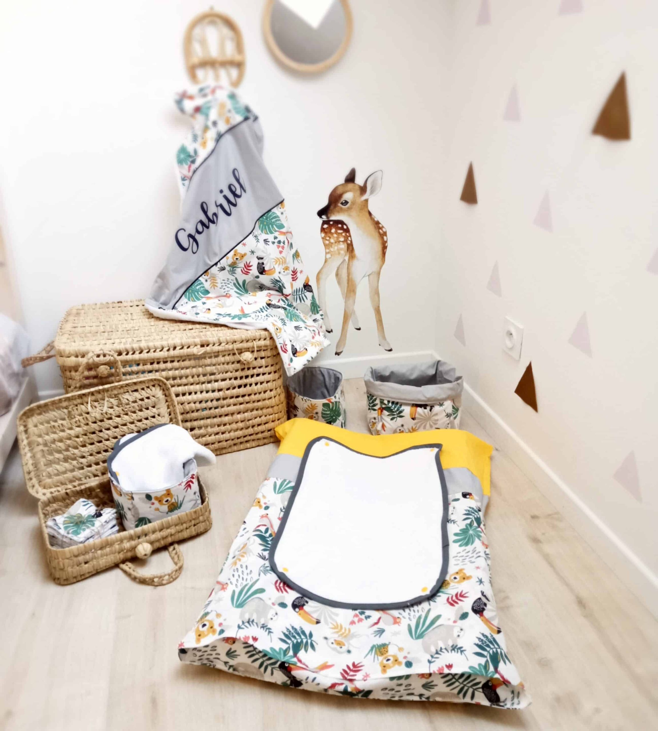Et si vous poussiez la décoration jusqu’ici : le matelas à langer. Pratique, sa petite serviette amovible peut se changer en 2 temps 3 mouvements pour un lieu de change toujours propre. Assortissez-la à tout le reste et faites entrer votre matelas à langer dans l’univers de votre bébé.
