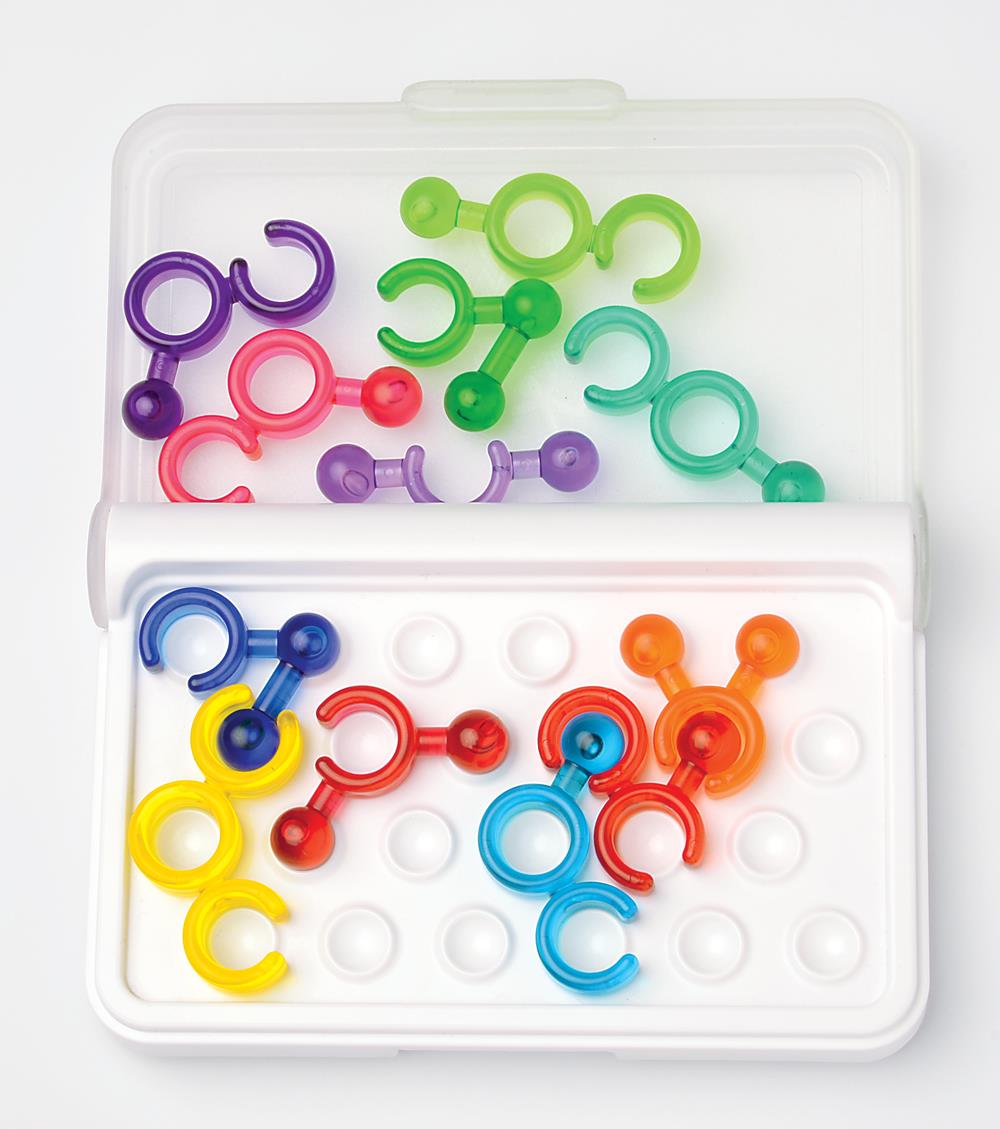 Trouverez-vous le chaînon manquant? Soyez astucieux et placez toutes les pièces du puzzle sur le plateau de jeu. Mais attention ! Il y a 36 pièces du puzzle et seulement 24 places sur le plateau ! Les anneaux ouverts et les petites boules de différentes pièces peuvent être placés au même endroit. Mais uniquement si vous les reliez correctement. IQ-Link est un jeu de voyage compact et le jeu de réflexion le plus complexe dans la série IQ de SmartGames. En outre, les pièces sont tout simplement fantastiques avec leurs couleurs transparentes. Jouer IQ Link stimule les compétences cognitives suivantes:…
