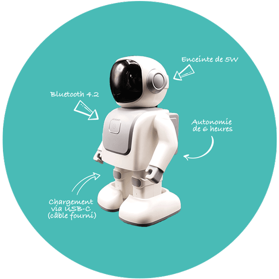 ROBOT enceinte sur batterie. les petits et grand enfants pourront s’amuser en écoutant leur music grâce à ROBERT, le robot danseur. Ces pas de danse s’accorderont avec le rythme de la musique écoutée. Le KIDYROBOT, de son petit nom Robert, est le parfait animateur de soirées. Description ROBOT enceinte sur batterie. Vos petits et grands enfants s’amuseront en écoutant leur musique grâce à ROBERT, le robot danseur. Ses pas de danse s’accorderont au rythme de chaque musique écoutée. Le KIDYROBOT, de son petit nom Robertt, est le parfait animateur de soirées. Plusieurs connectivités pour partager votre musique Vous utiliserez le…
