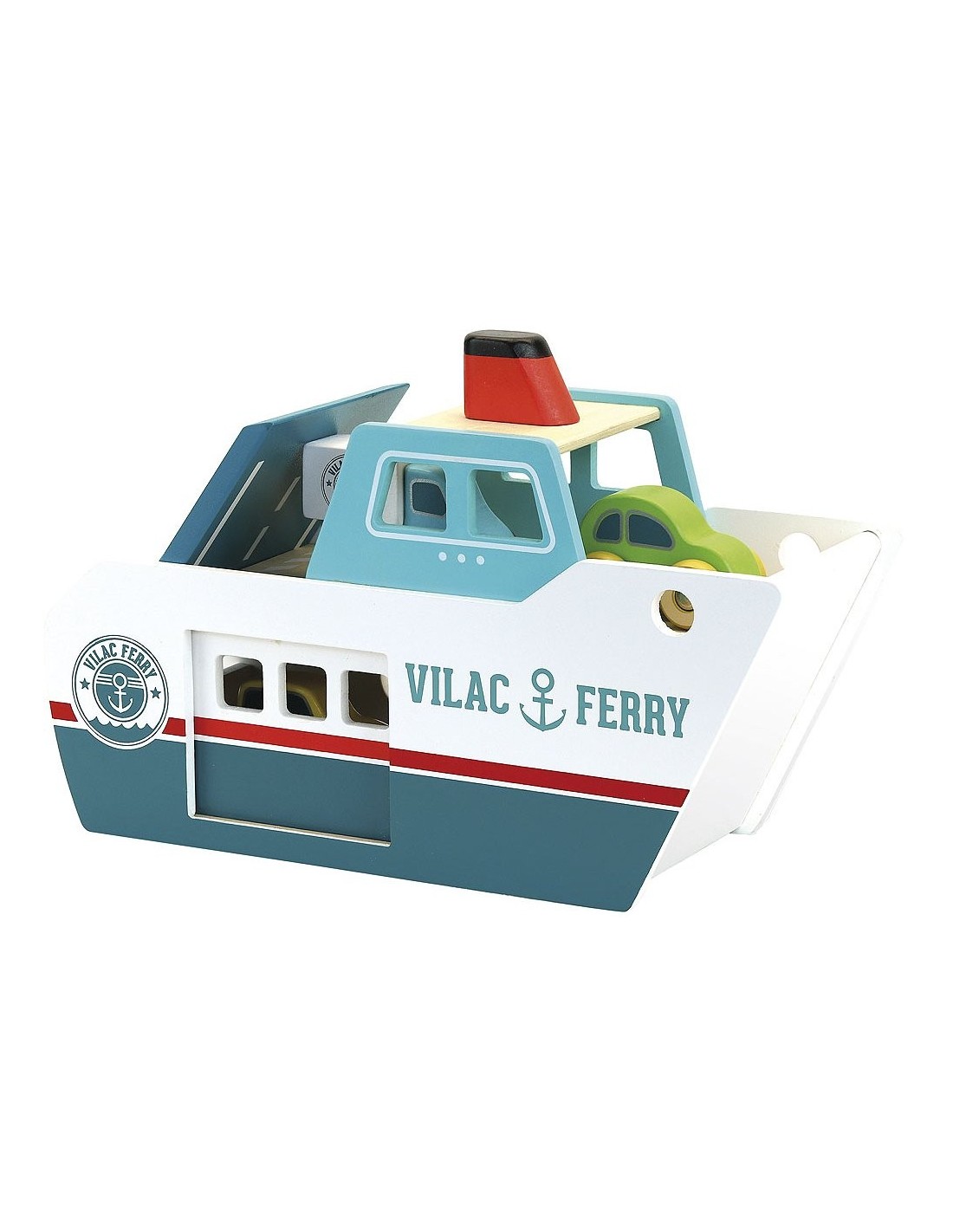 Un beau ferry en bois avec une rampe pivotante à l’arrière et une porte latérale coulissante pour charger sa cargaison et l’embarquement des véhicules. Livré avec 2 voitures et 1 camion en bois . A partir de 3 ans. Tranche d’âge 3 ans et + Dimensions 30 x 19 x 11 cm