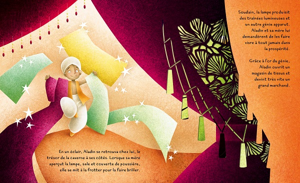En plein cœur du désert de l’Arabie, le jeune Aladin pénètre dans une grotte mystérieuse à la recherche d’une lampe aux pouvoirs magiques. Commence alors une aventure extraordinaire avec des magiciens, des génies et une très belle princesse. Découvre l’un des plus beaux contes orientaux en feuilletant les pages finement découpées au laser de ce livre et laisse-toi envoûter par sa magie… Un grand classique des contes pour enfants revisité avec un graphisme novateur. La finesse des découpes au laser rendra la lecture encore plus passionnante. Avec de magnifiques illustrations qui capturent l’attention du lecteur. UGS : 9788868608149Catégories : 5+, Albums Illustrés, Livres à Dècoupes