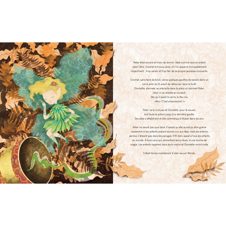Nouvelle édition d’un grand classique qui contient de nombreuses illustrations élégantes et poétiques. Description La magie passe à travers une fenêtre ouverte sur les étoiles, comme une bouffée de vent féerique, et transforme la vie de trois enfants prêts à s’envoler à bord de leurs rêves. Cet enchantement porte le nom légendaire de Peter Pan, symbole de l’éternelle jeunesse, qui redécouvre chaque jour les merveilles de la fantaisie. Un grand classique illustré par des images élégantes dédié au temps de l’enfance et à tous ceux qui ont envie d’y retourner.