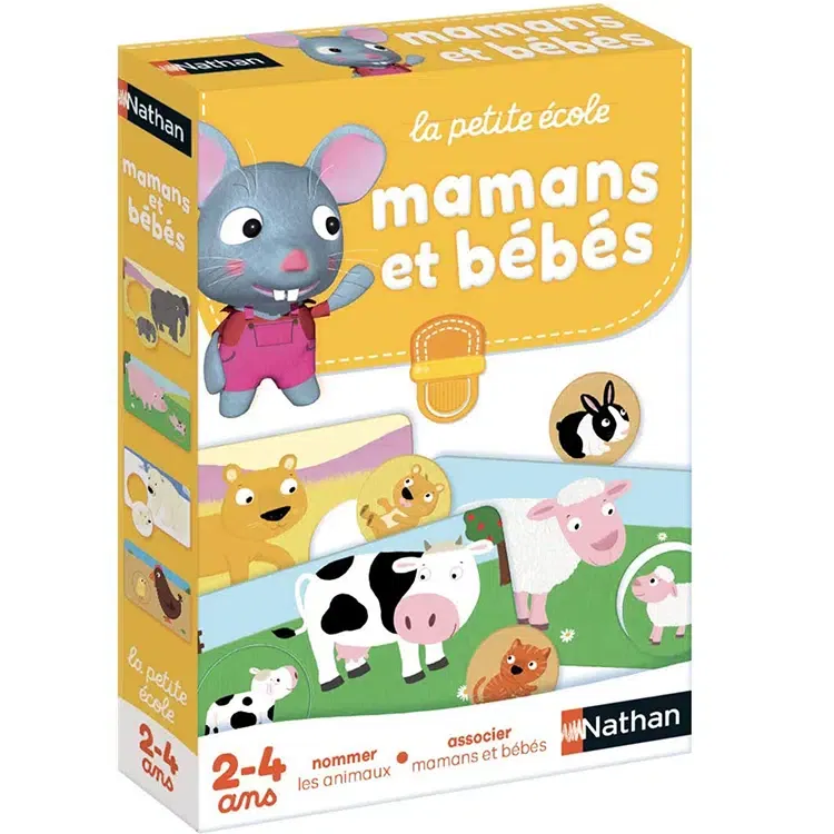 Nathan La Petite École Mamans et Bébés est un jeu éducatif spécialement conçu pour les enfants dès 2 ans. Grâce à de jolies cartes illustrées, les tout-petits apprennent à reconnaître les animaux et à associer chaque maman avec son petit.