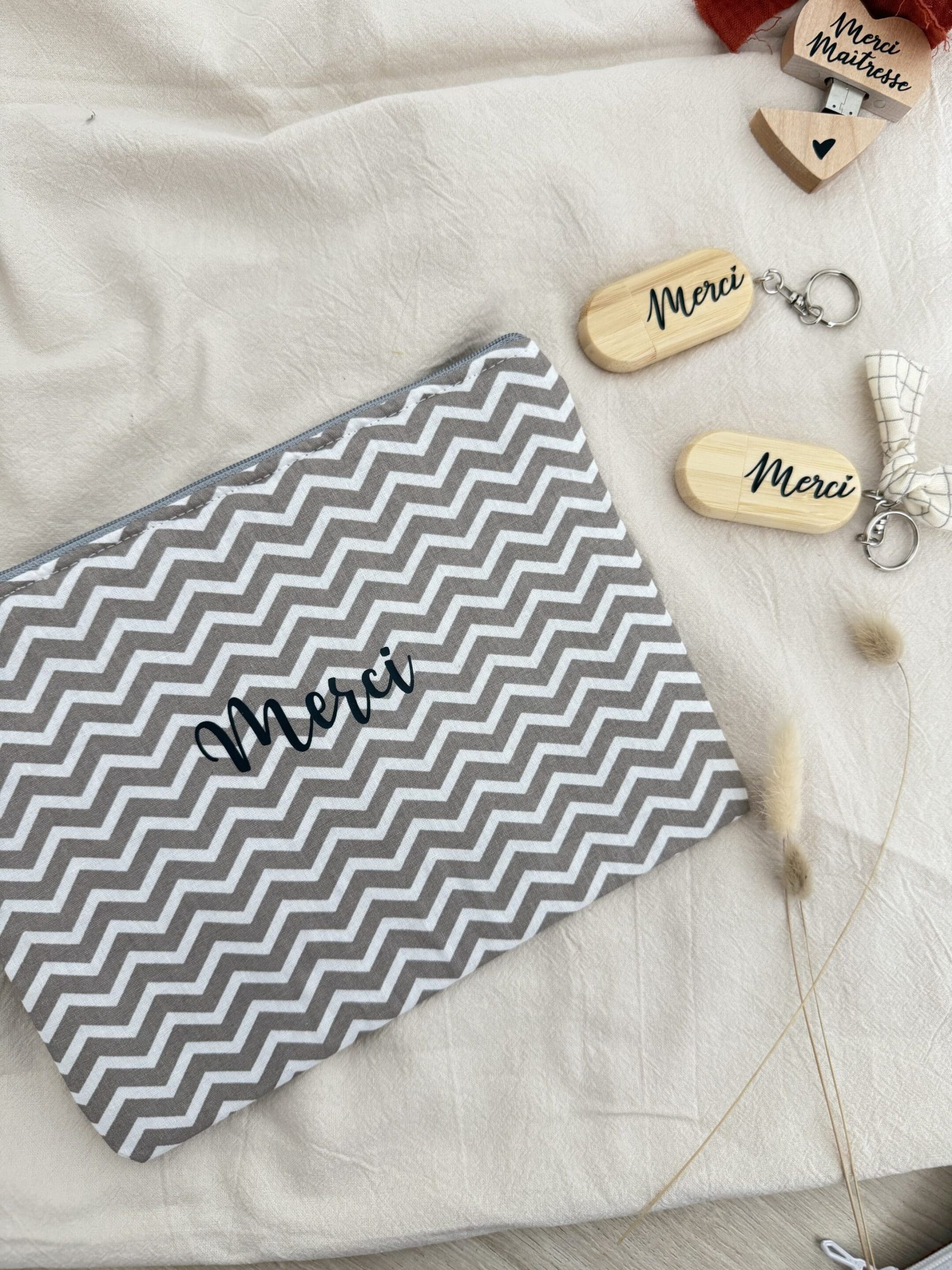 Pour y ranger quelques crayons, des accessoires de coiffure ou encore quelques petits trésors, cette pochette plate sera parfaite ! Vous pourrez la glisser facilement dans la grande trousse de toilette ou même dans un sac à main. Personnalisable, elle sera également un petit cadeau parfait pour les mamies, les nounous, ou encore les maîtresses ! Afin de faire vos choix de tissus et typographies plus facilement, n’hésitez pas à aller vous référer au nuancier