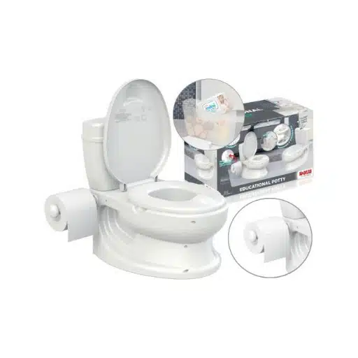 Pot de toilette éducatif blanc de la marque Dolu. Avec son de chasse d’eau et bac de rangement ainsi que le pose papier de toilette. Le pot de toilette pour bébé est un accessoire très pratique pour effectuer la transition de la couche vers une relative autonomie. L’apprentissage de la propreté doit se faire en douceur et au rythme de chaque bébé. En moyenne, les enfants commencent à contrôler leurs désirs d’aller au toilettes vers l’âge de 2 ans. La marque Dolu produit aussi d’autres articles pour la sécurité et le confort du bébé. En Expliquant et en éduquant son…