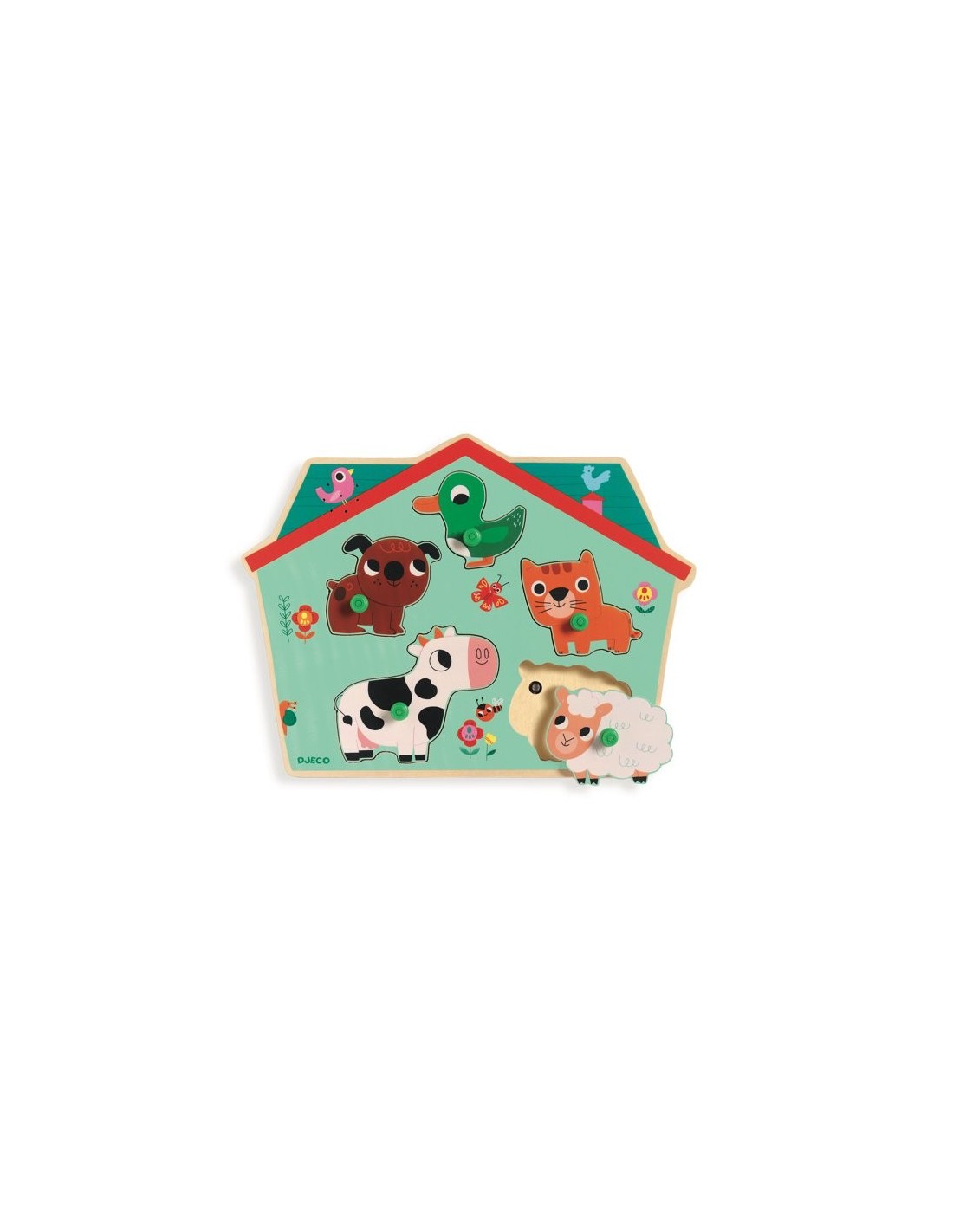 Découvrez le puzzle sonore ouaf woof de Djeco, un puzzle en bois musical pour les enfants à partir de 1 an, un puzzle d’encastrement avec 5 animaux de la ferme. Équipé de boutons pour une bonne préhension, votre enfant s’amusera à replacer les animaux sur le socle et écoutera leur cri. Une idée originale pour faire écouter les bruits des animaux de la ferme avec la vache, le mouton, le chien, le chat et le canard. Un cadeau ludique pour les filles et les garçons. Dimensions du puzzle : 28,5 x 21 x 1,5 cmMaquette et puzzle 3D, p Dimensions de la boîte : 30 x 23 x…