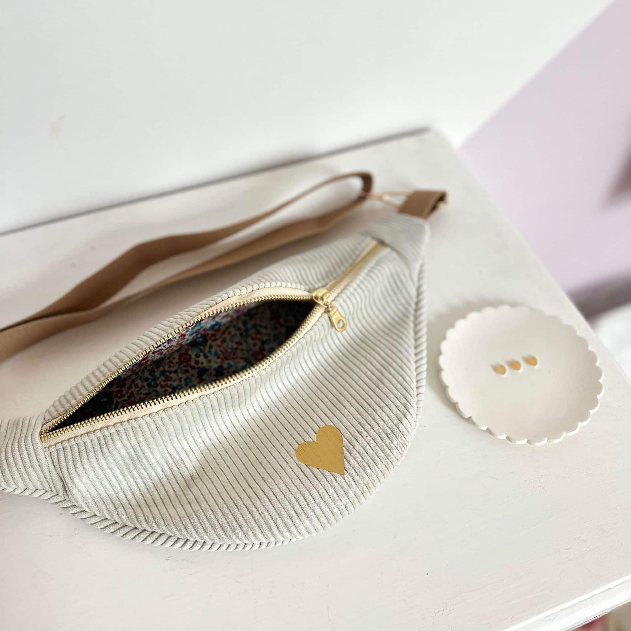 Sac banane, velours beige et liberty emma and georgina