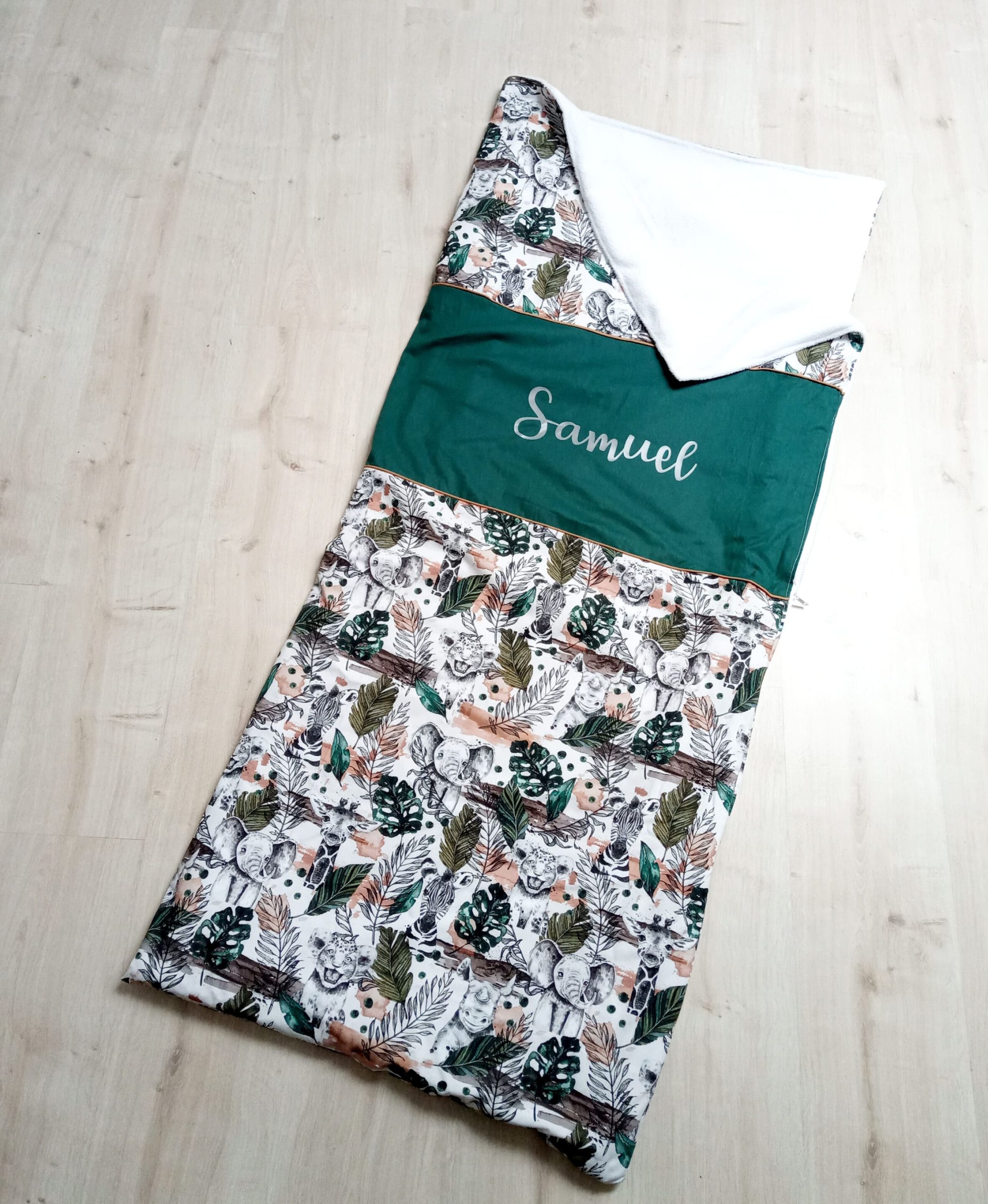 Sac de couchage enfant personnalisable, en coton et tissu doudou.