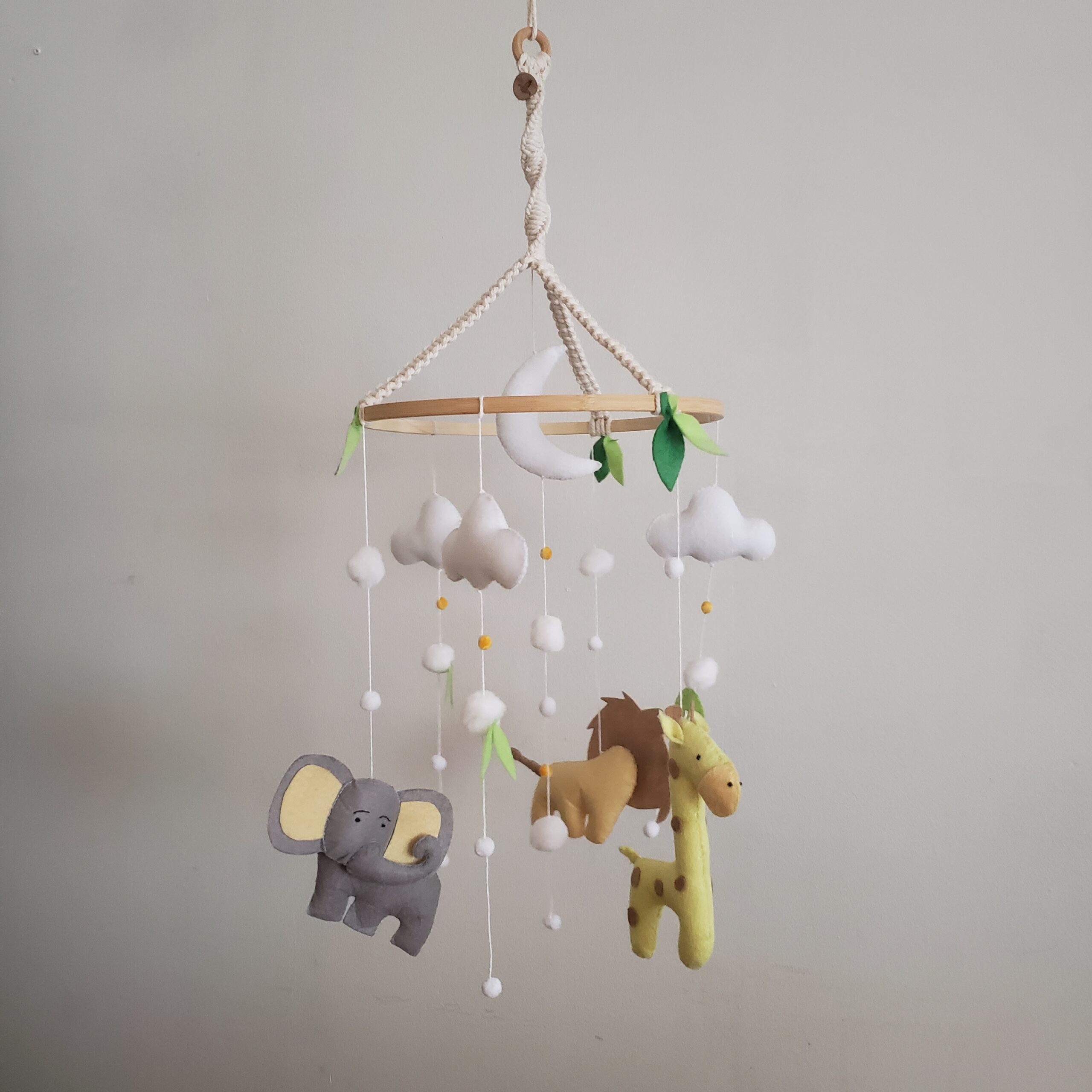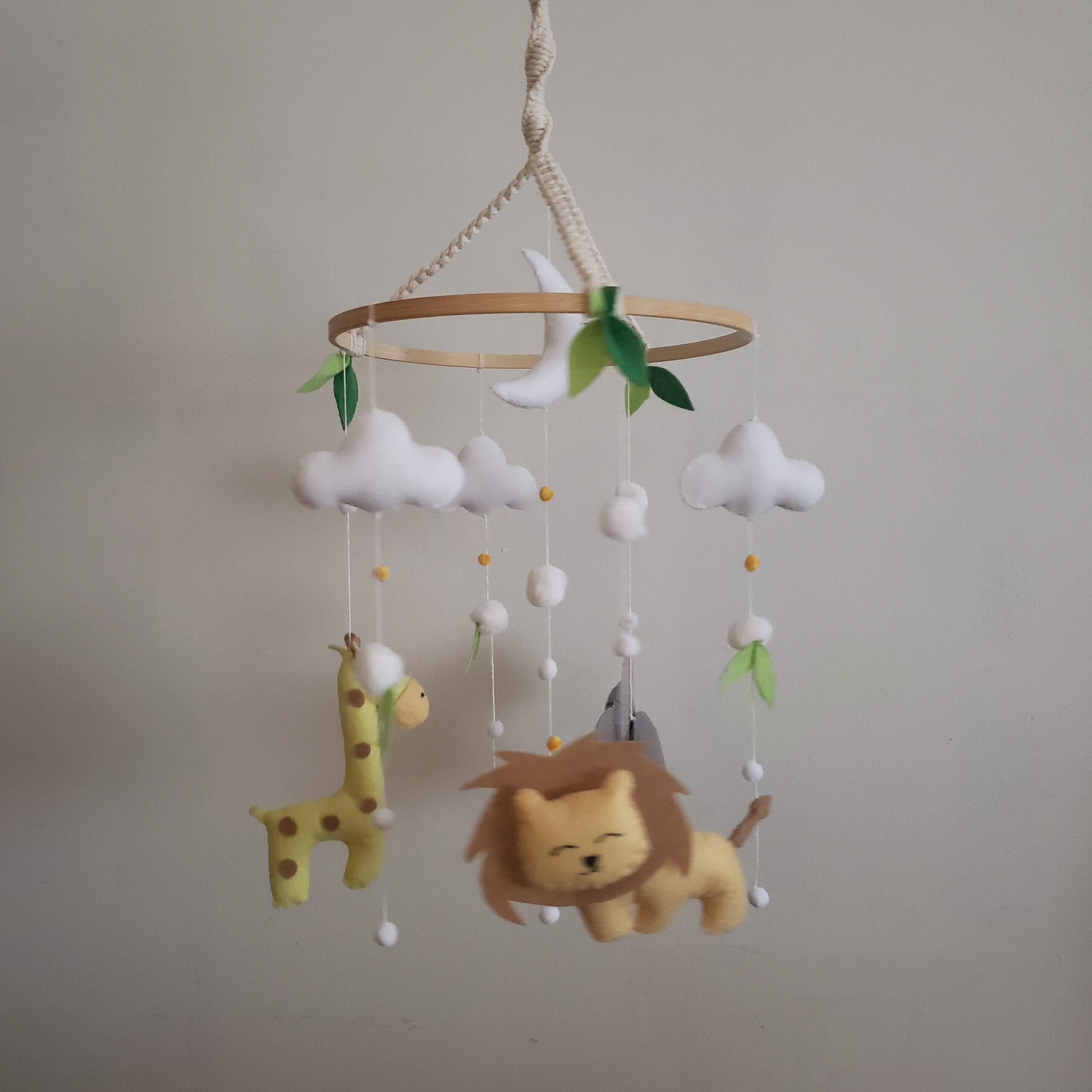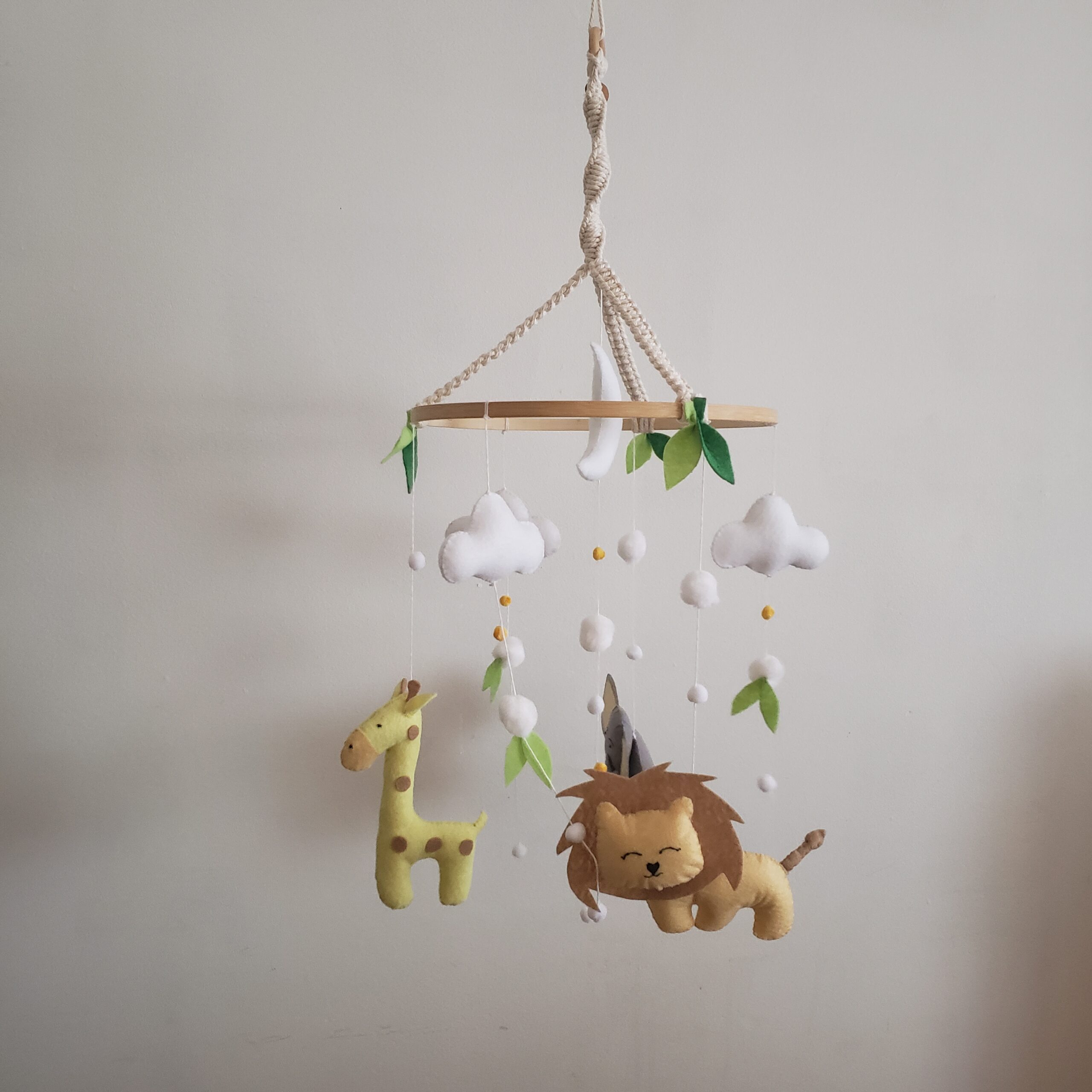 Mobile bébé pour berceau fabriqué à la main avec soin et amour. Thématique SAFARI comprenant :