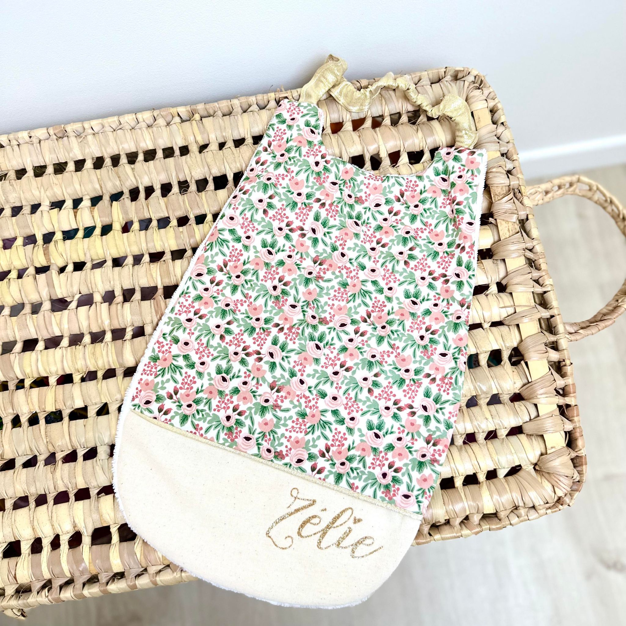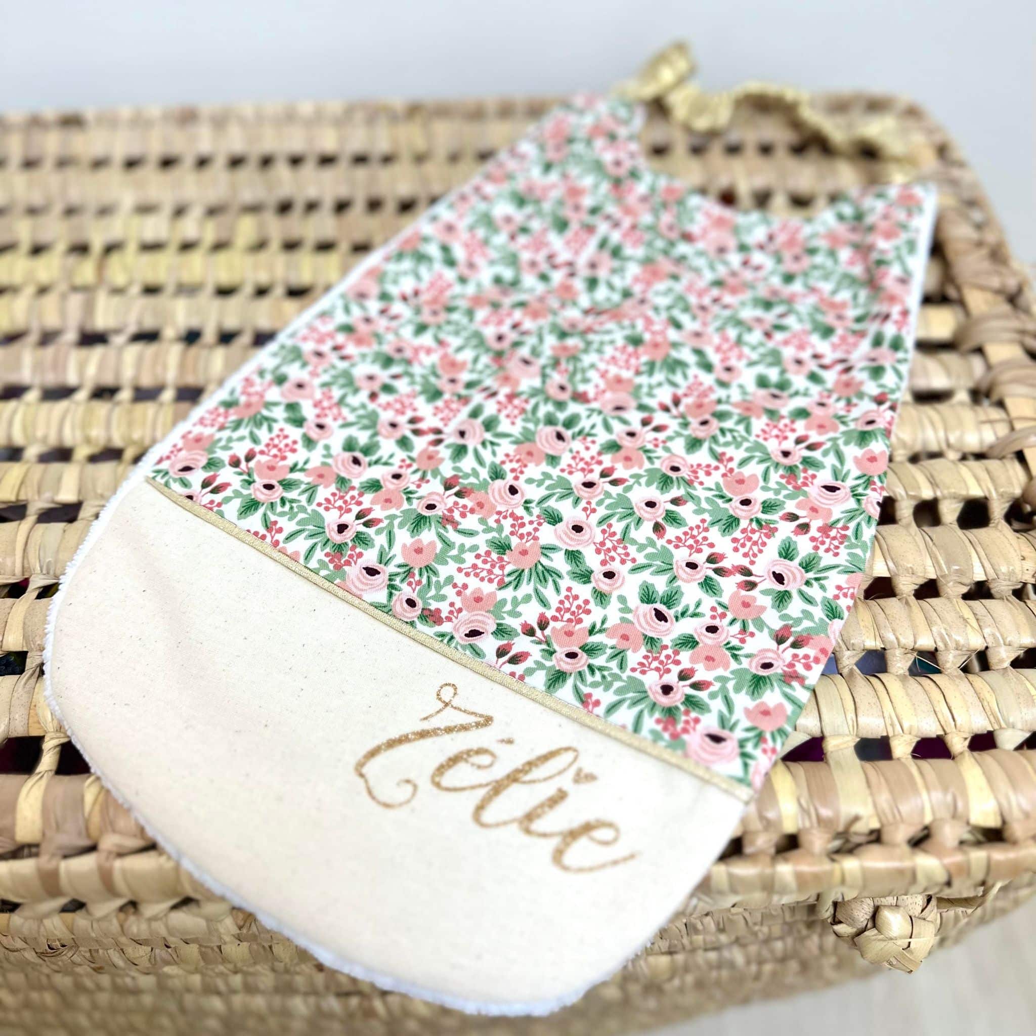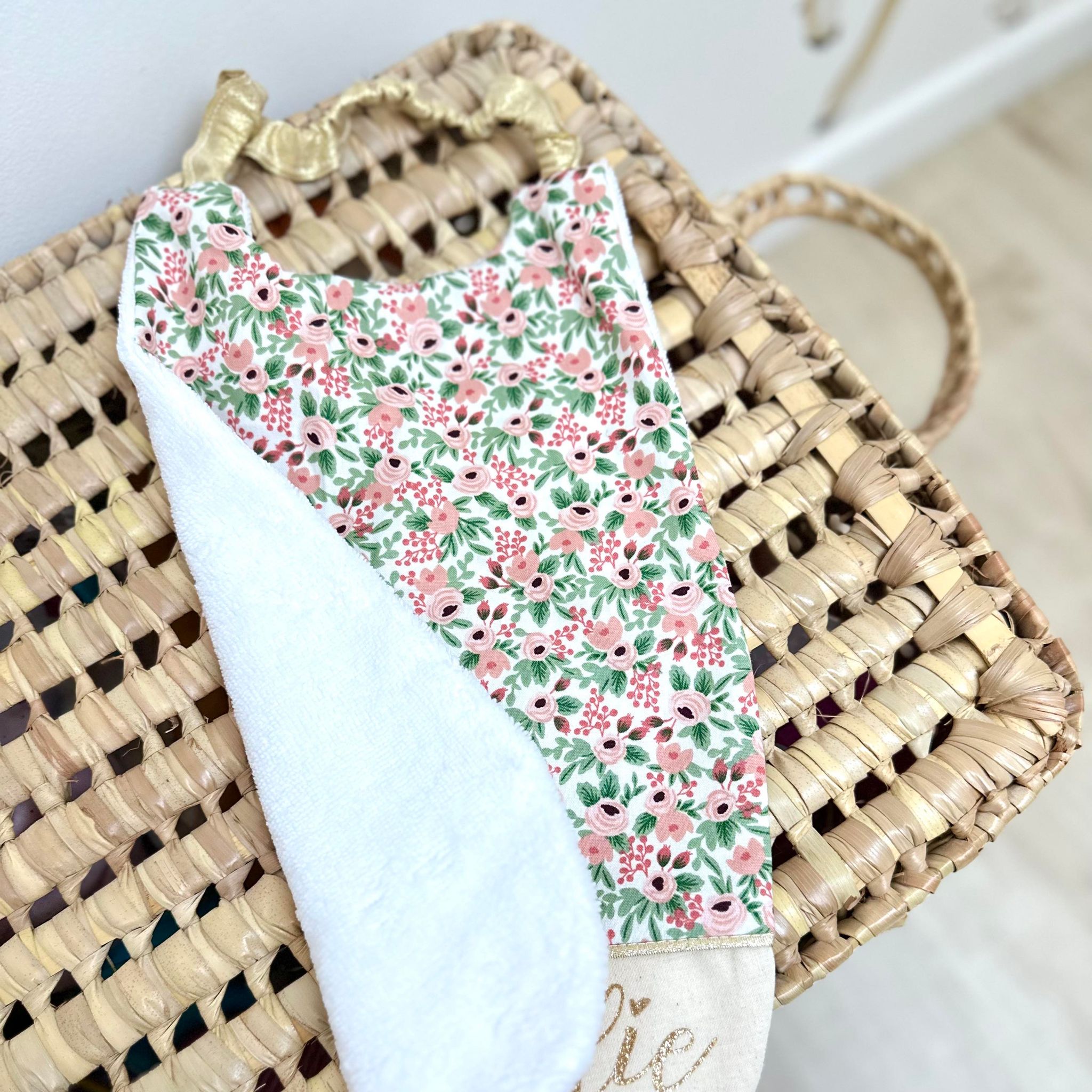 Serviette élastiquée, fleuri riflepaper et uni crème