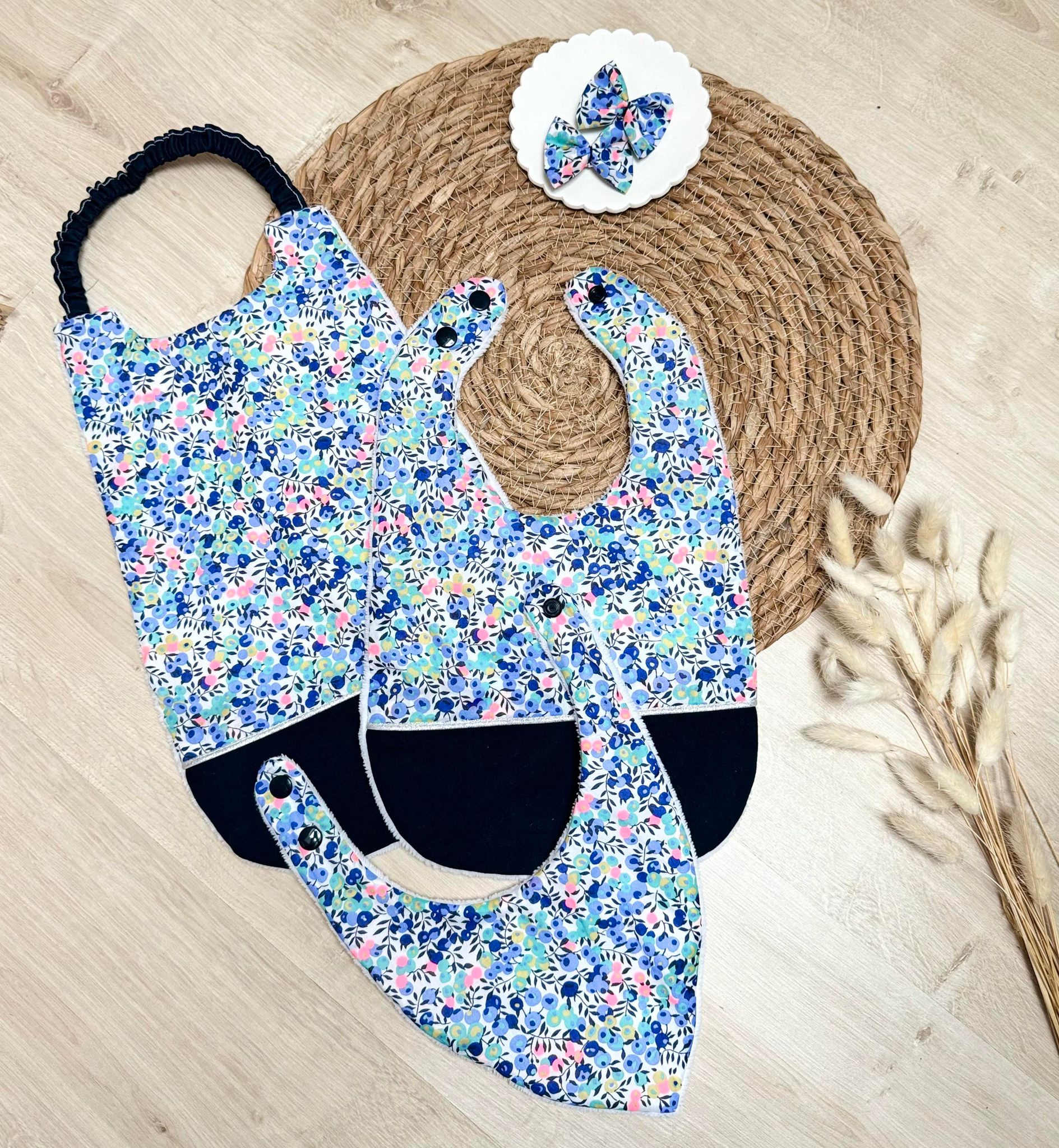 Serviette élastiquée, liberty wiltshire fluo et uni marine