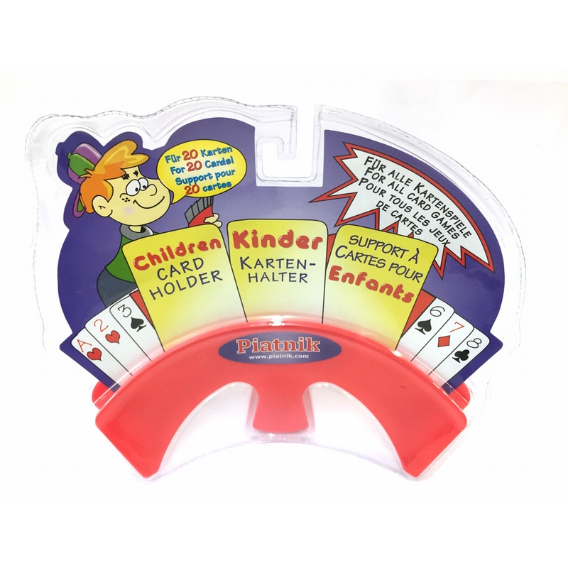 Porte cartes courbe de couleur rouge permettant de tenir jusqu’à 25 cartes facilement. Les plus petits peuvent maintenant tenir leurs cartes en main comme les adultes grâce à la poignée ergonomique. On peut également le poser tout simplement sur la table. Idéal pour les parties de Mistigri et 7 familles !