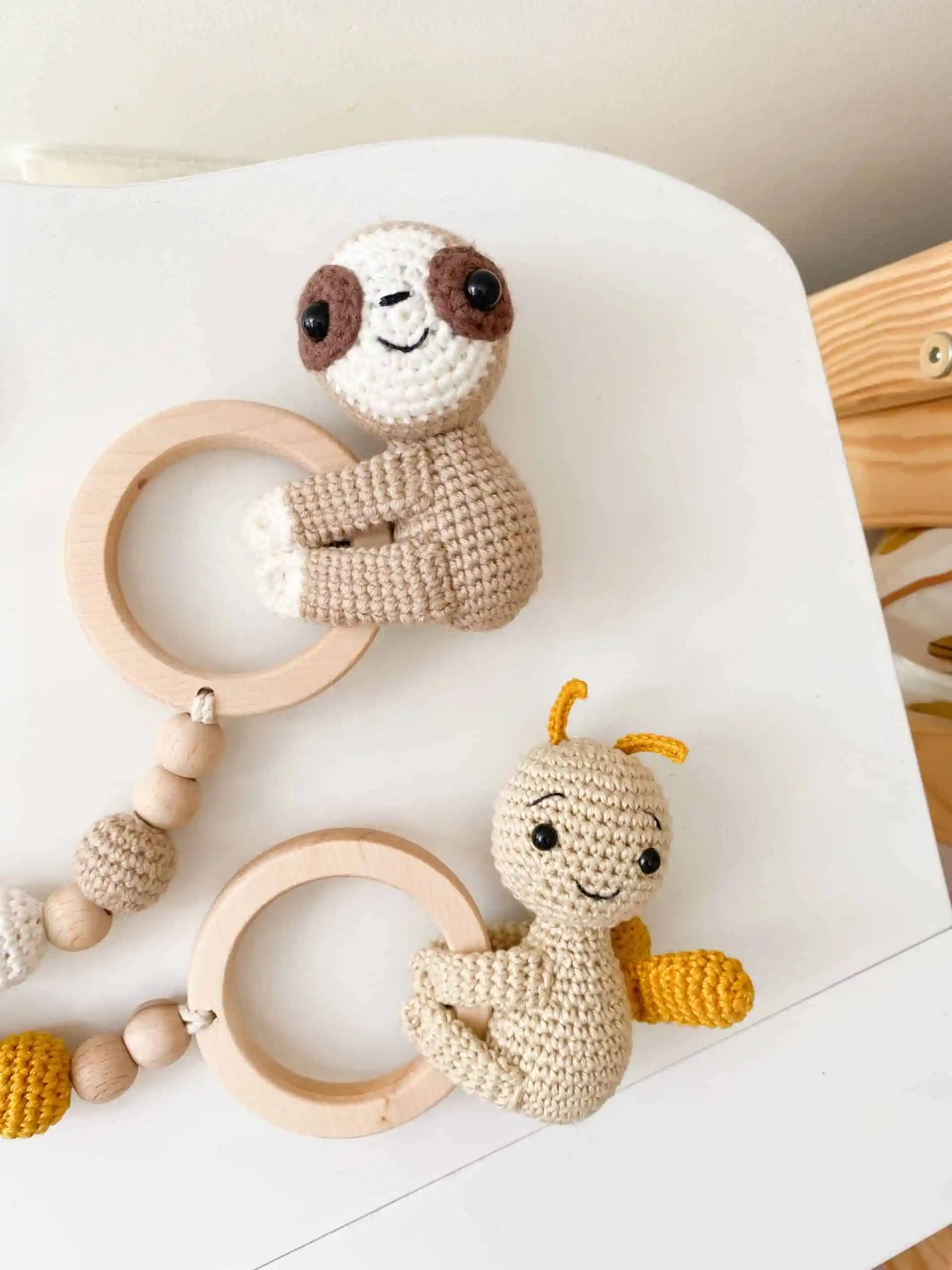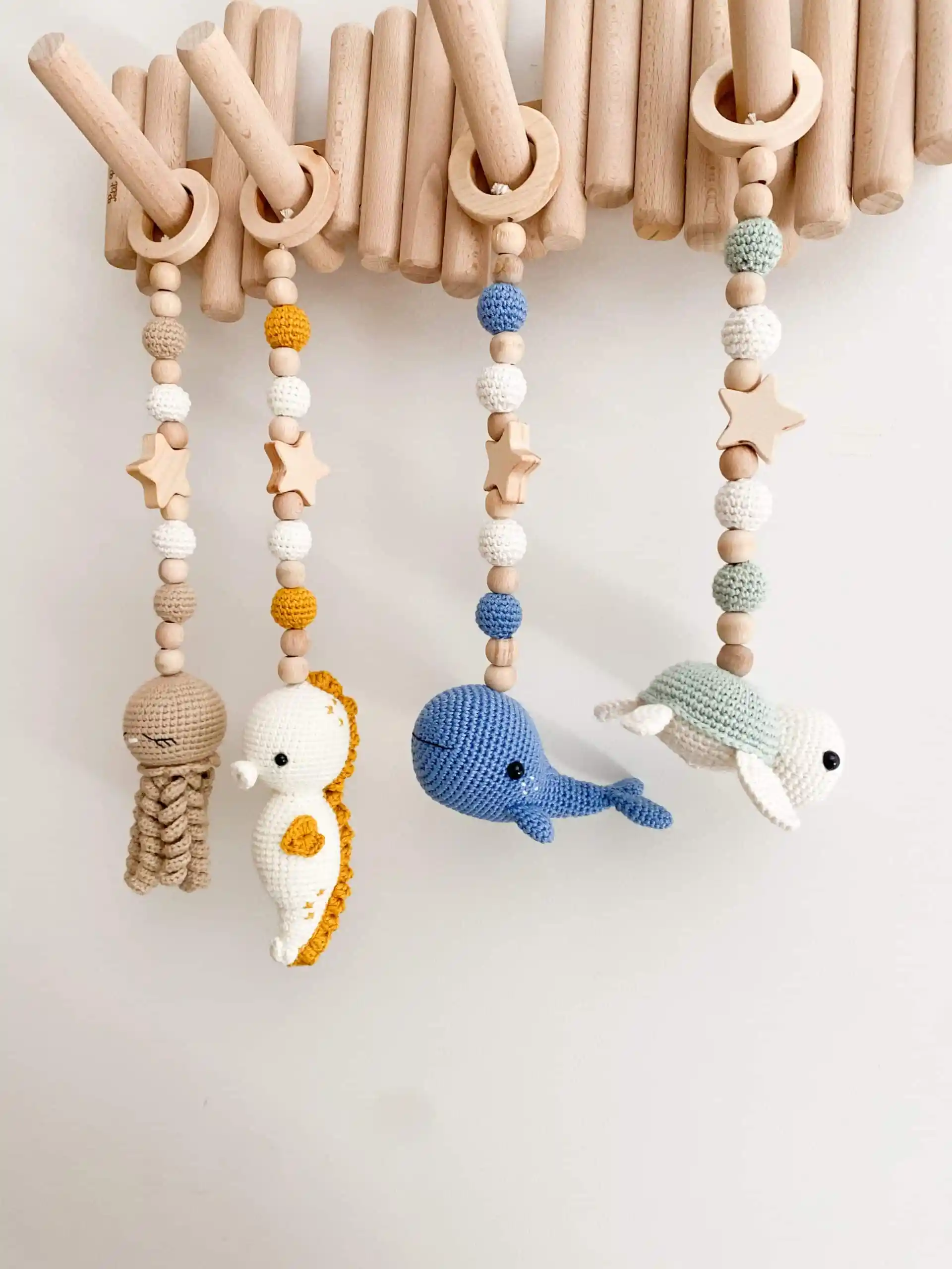 Suspendue au-dessus de la tête de votre bébé, sur laquelle sont fixés différents jouets colorés et ludiques comme ces adorables petits animaux. Vous pouvez choisir parmi plusieurs modèles : Lion, Lapin, Hippocampe, Koala, Méduse, Paresseux, Éléphant, Baleine, Tortue, Girafe, Zèbre, Renard, Lama, Abeille…