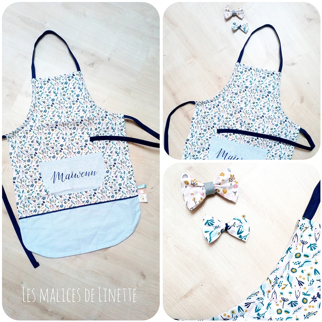 Tablier, fleuri bleu uni bleu glacier