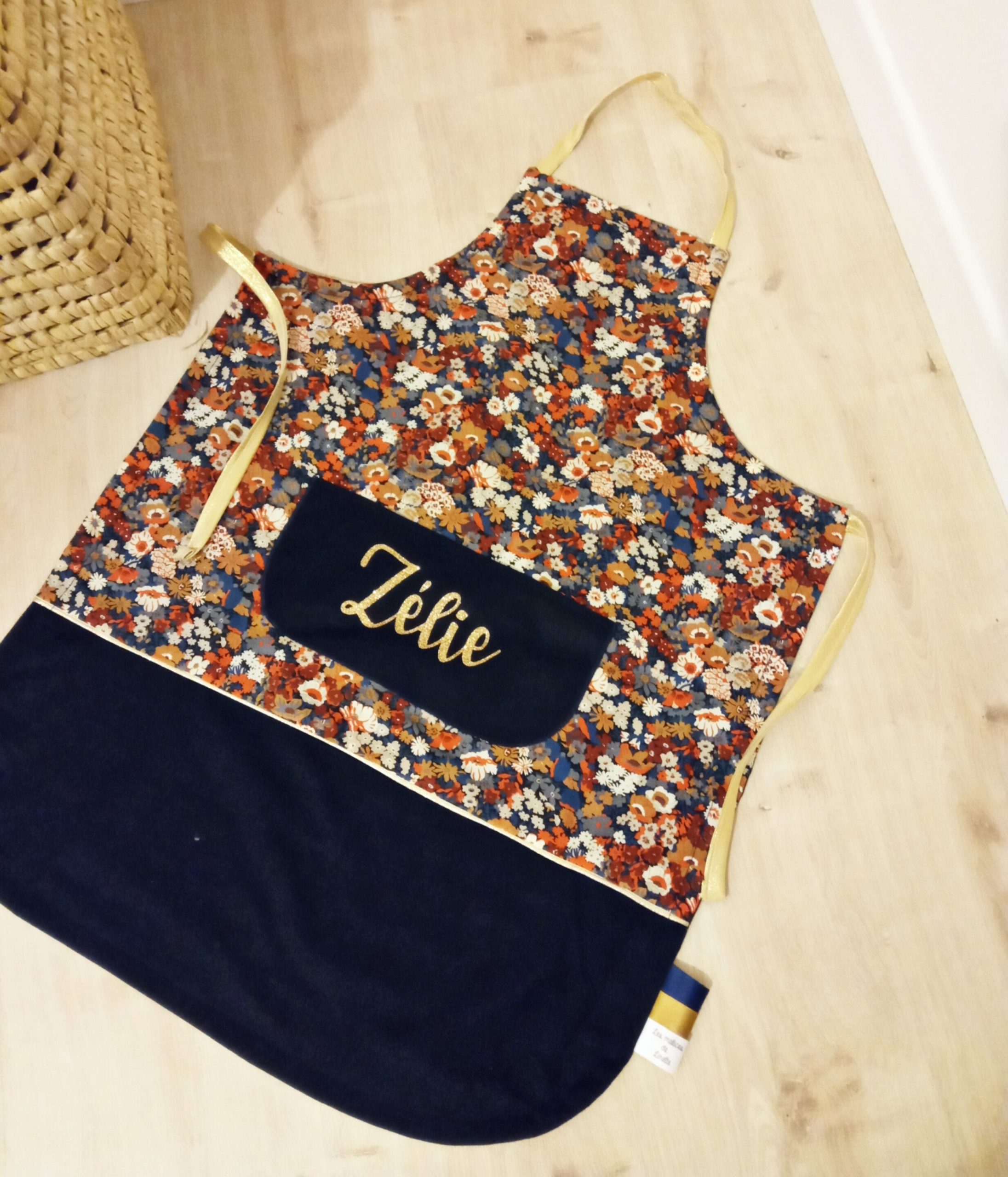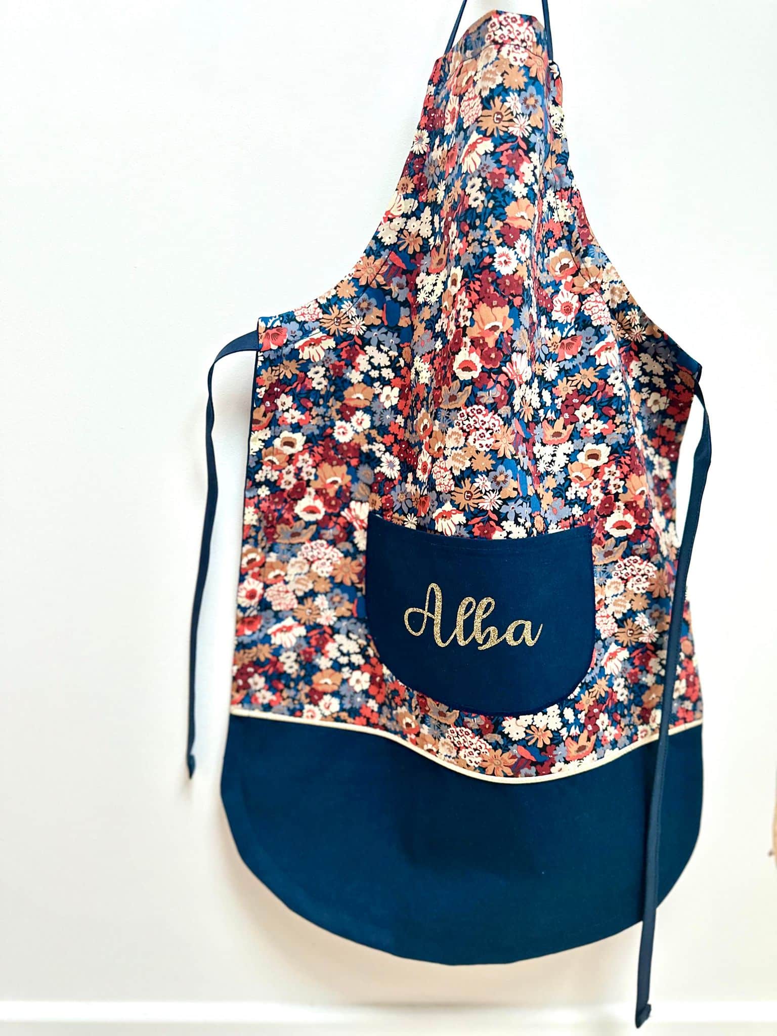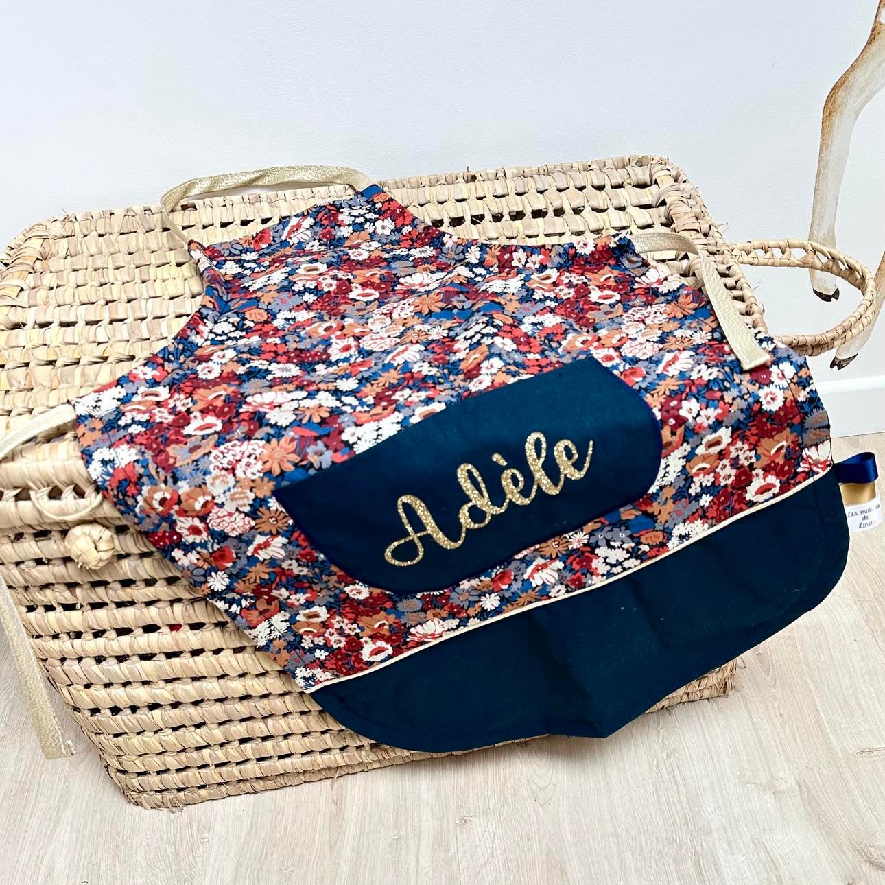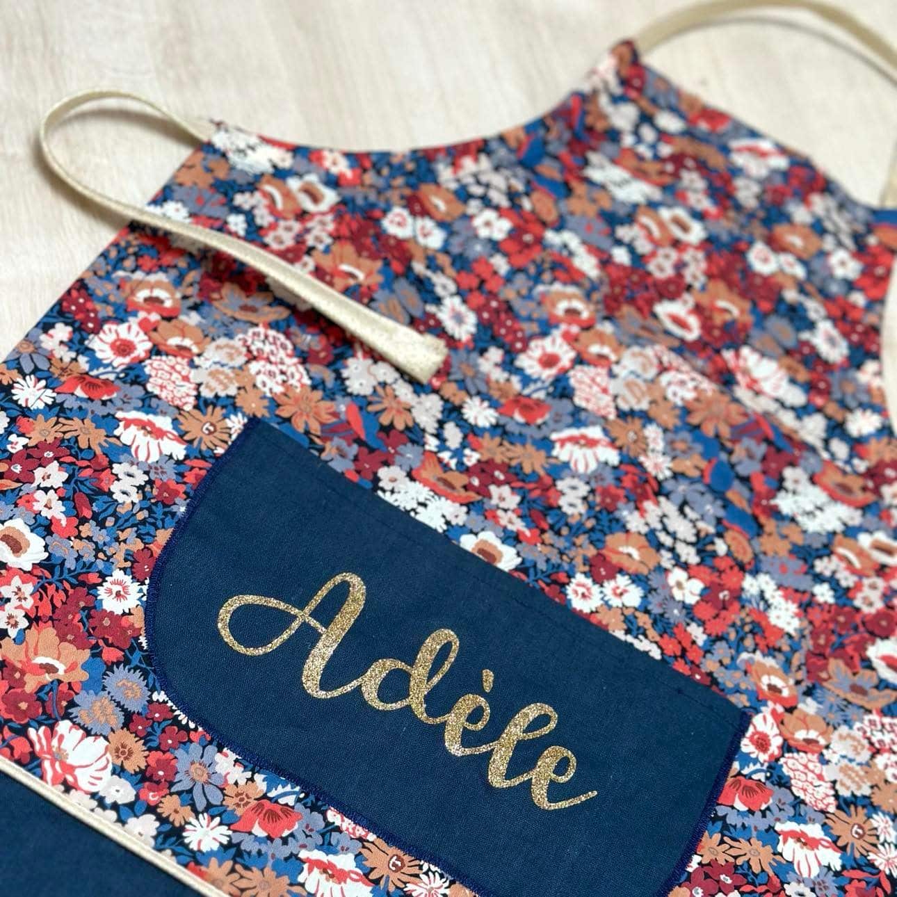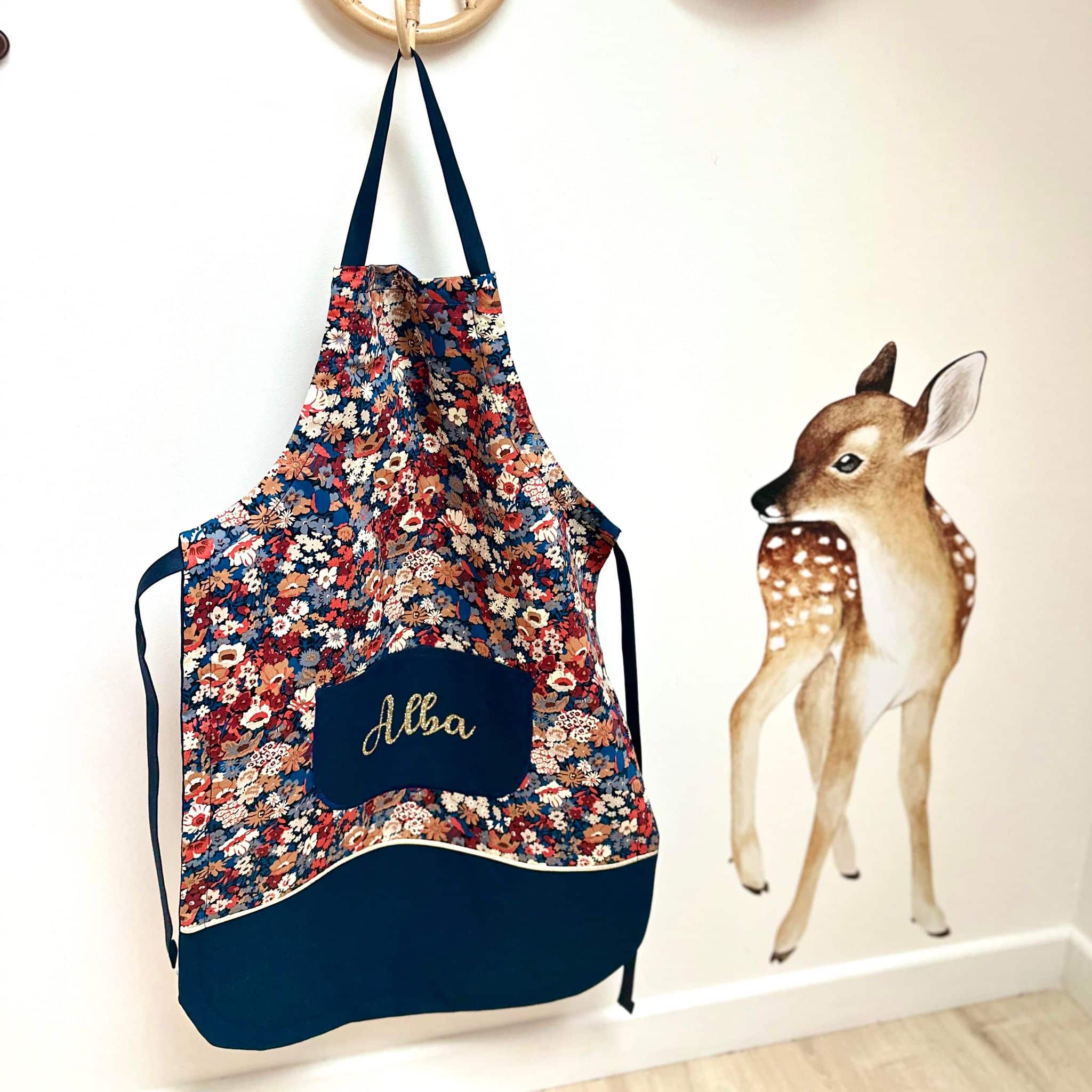 Tablier en 100% coton. Avec un lien coulissant pour l’ajuster à la taille de votre enfant.