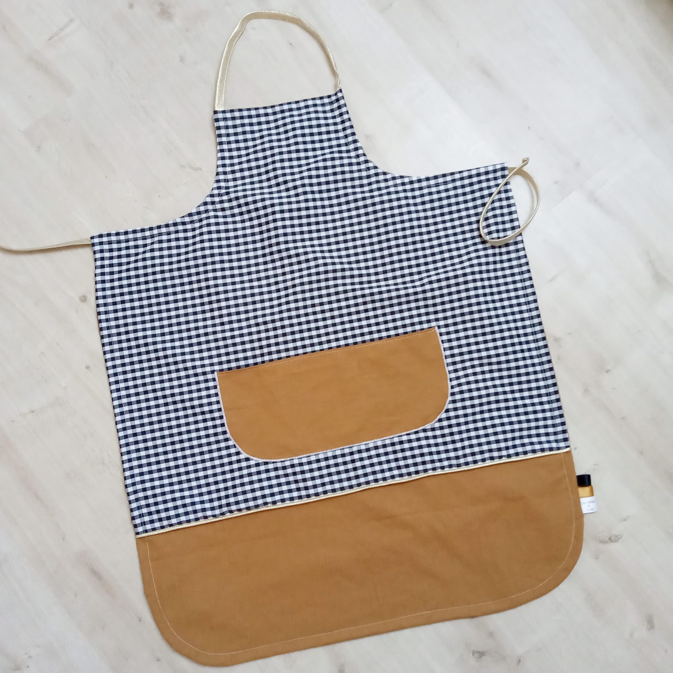 Tablier, Vichy noir et uni camel