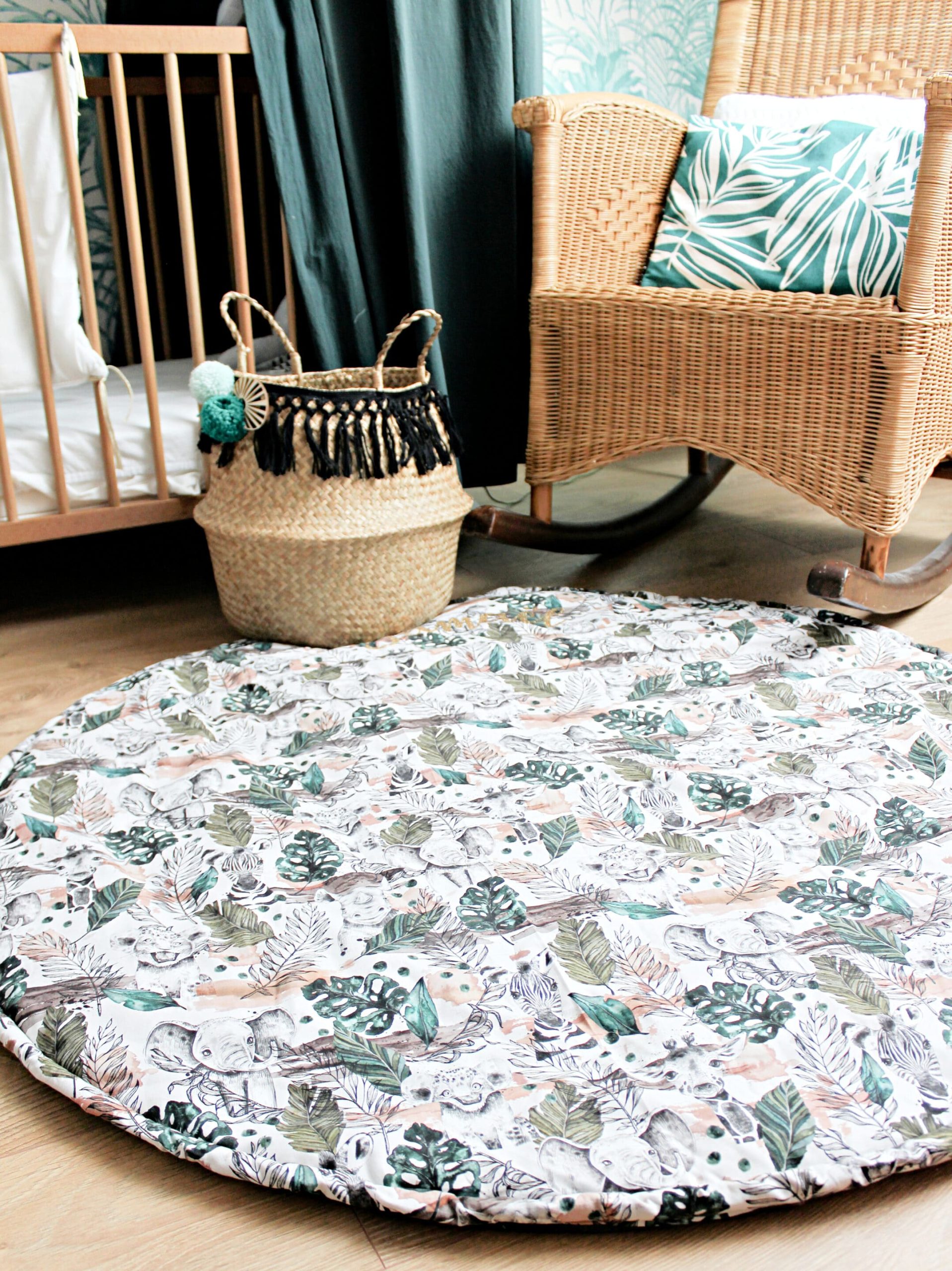 Jouer partout et tout le temps : c’est surement le souhait de votre tout-petit (et même des plus grands). Afin de pouvoir emporter ses jouets préférés partout où il le souhaite, et d’avoir toujours à porter de main un tapis de jeu sur lequel il puisse jouer, vous pouvez opter pour ce tapis de jeu nomade. Mettez-y les jouets à emporter, fermez le sac et partez pour de jolies aventures ! Pratique et utile, vous pouvez également le personnaliser pour lui permettre de s’accorder parfaitement à la décoration de la chambre ou de l’univers que vous avez créé.